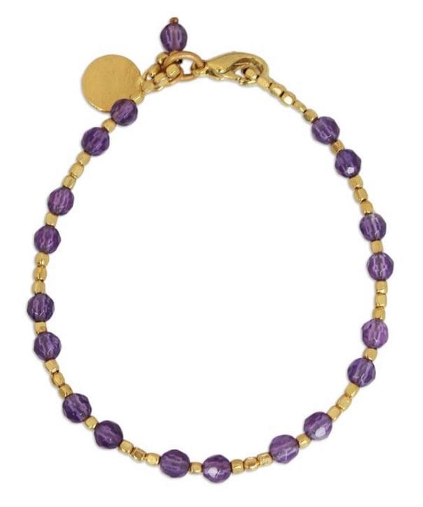 NOVICA Purple Beaded Bracelet Divine Deva bracelet was hand crafted in Thailand by Khun Boom. Made with beautiful crystalline beads that truly have the look of faceted amethyst stones. The bracelet also includes brass beads that are plated in 24k gold. There is a small brass disk and crystalline bead that dangle from the clasp for added POP to this bracelet.