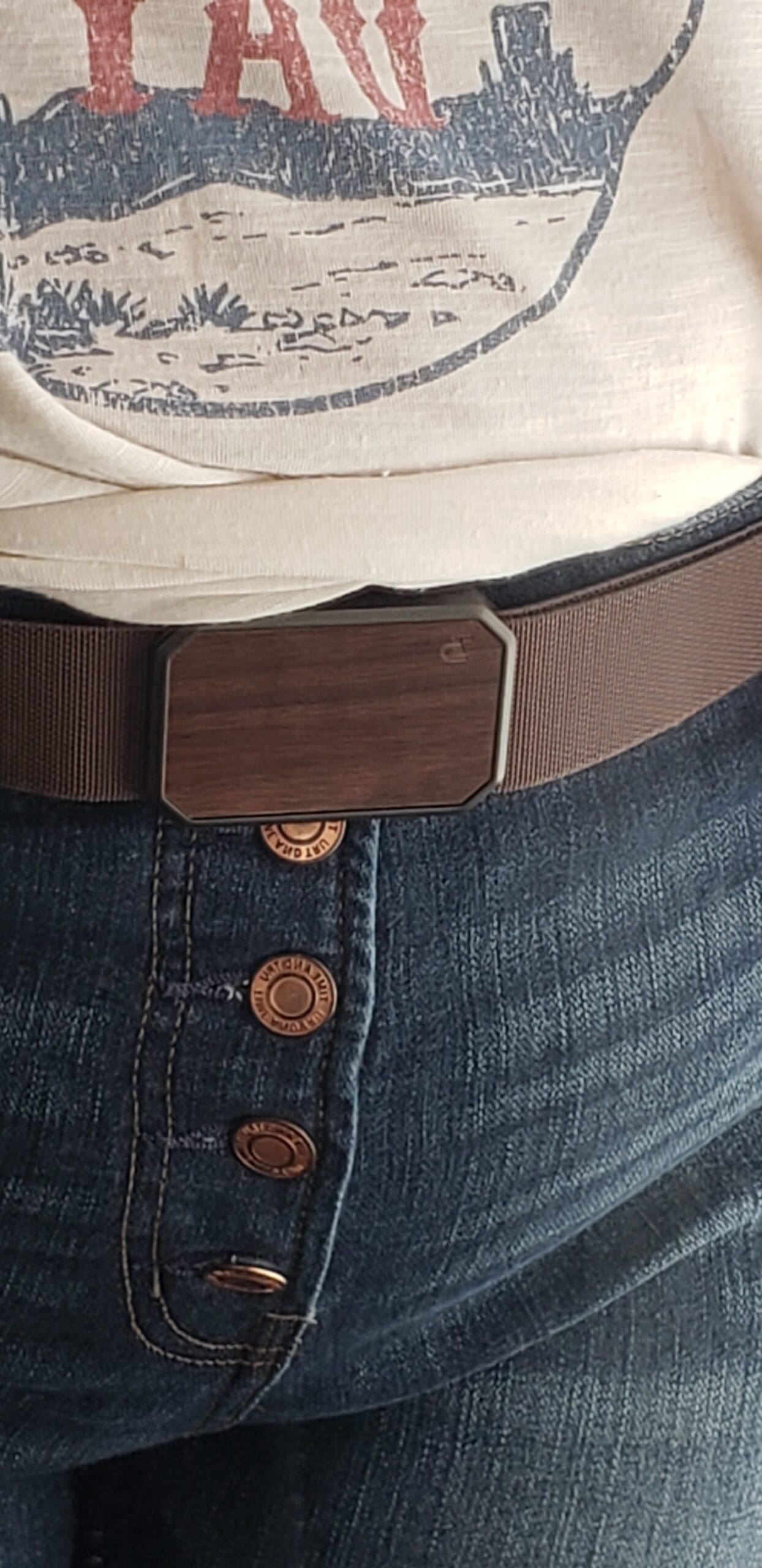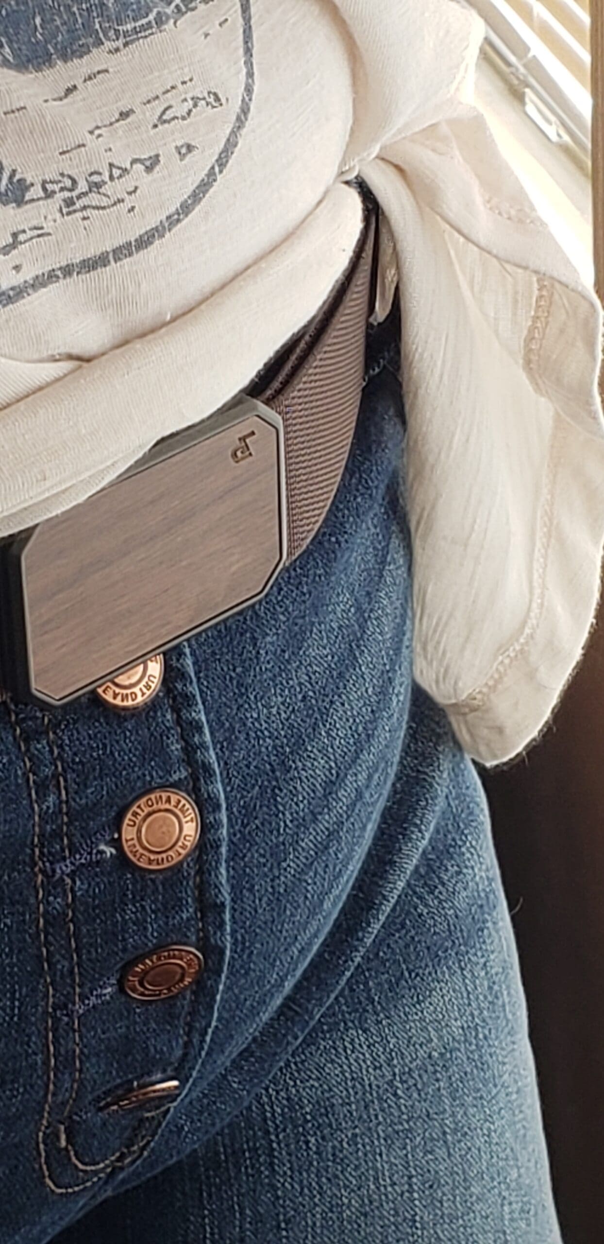 Man oh MAN do I love the buckle. The buckle isn’t bulky. It lays flat and doesn’t show through clothing, even t-shirts.