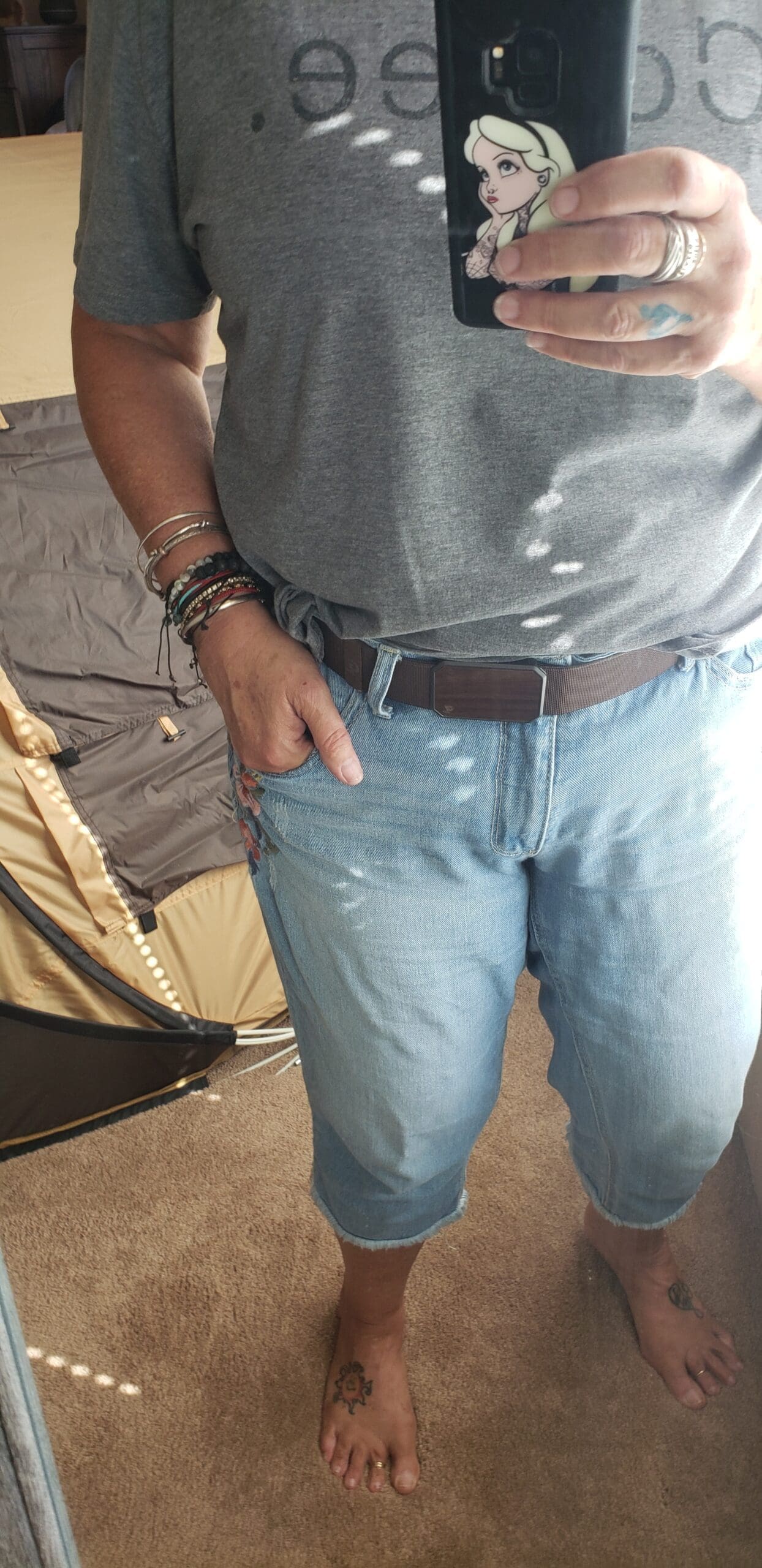 Before Covid I had lost a little over 50 pounds. I was doing great. YEAH me!! Then I did what every dieter does; I donated everything and anything that was lose. Except that one super cute, embroidered pair of jeans that I LOVE too much!!!