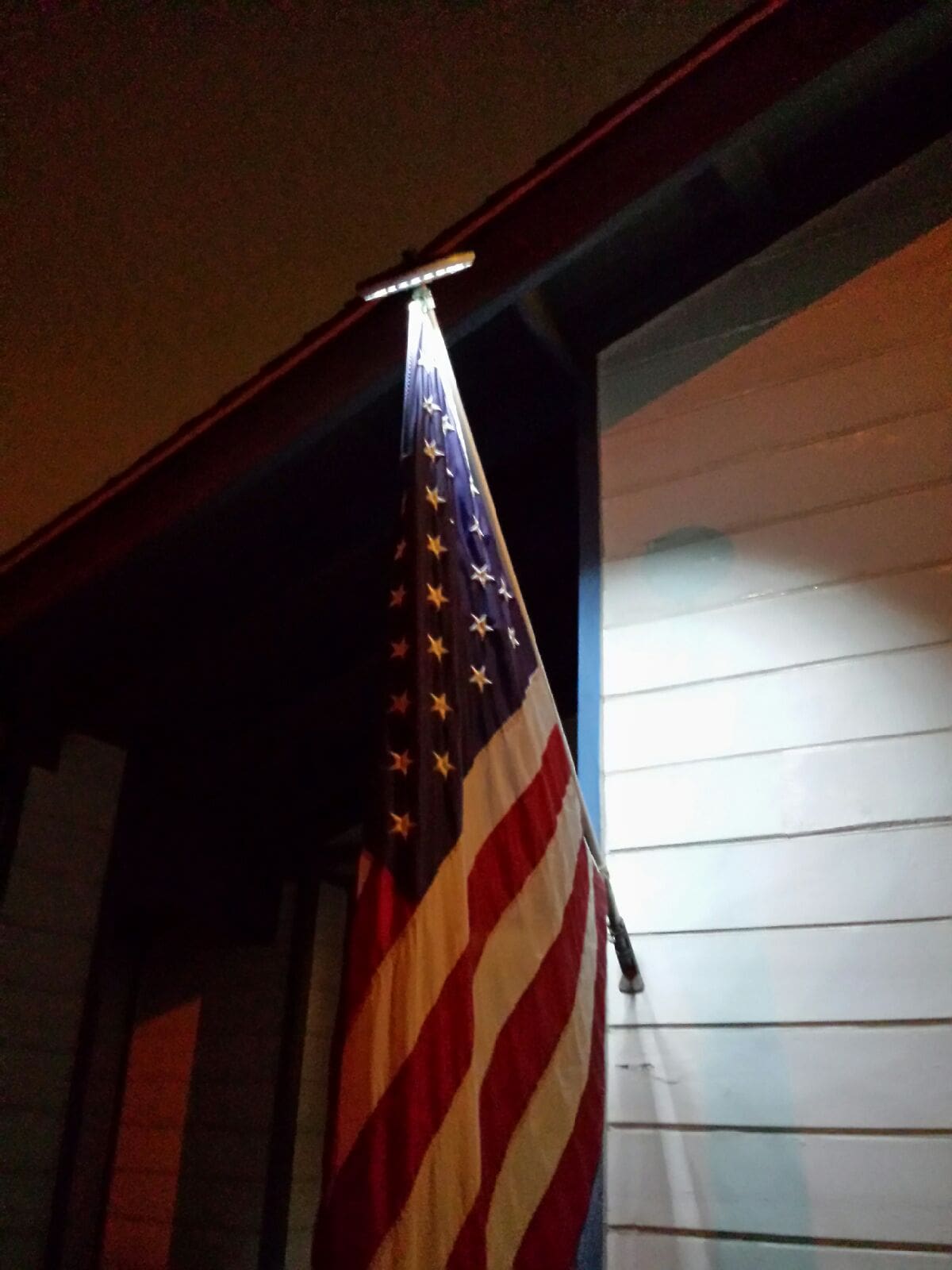 Not a single one!! This illuminates our flag. Bonus it makes our porch even that much brighter and in turn deters the bad guys from snoopin’ around the front of the house.
