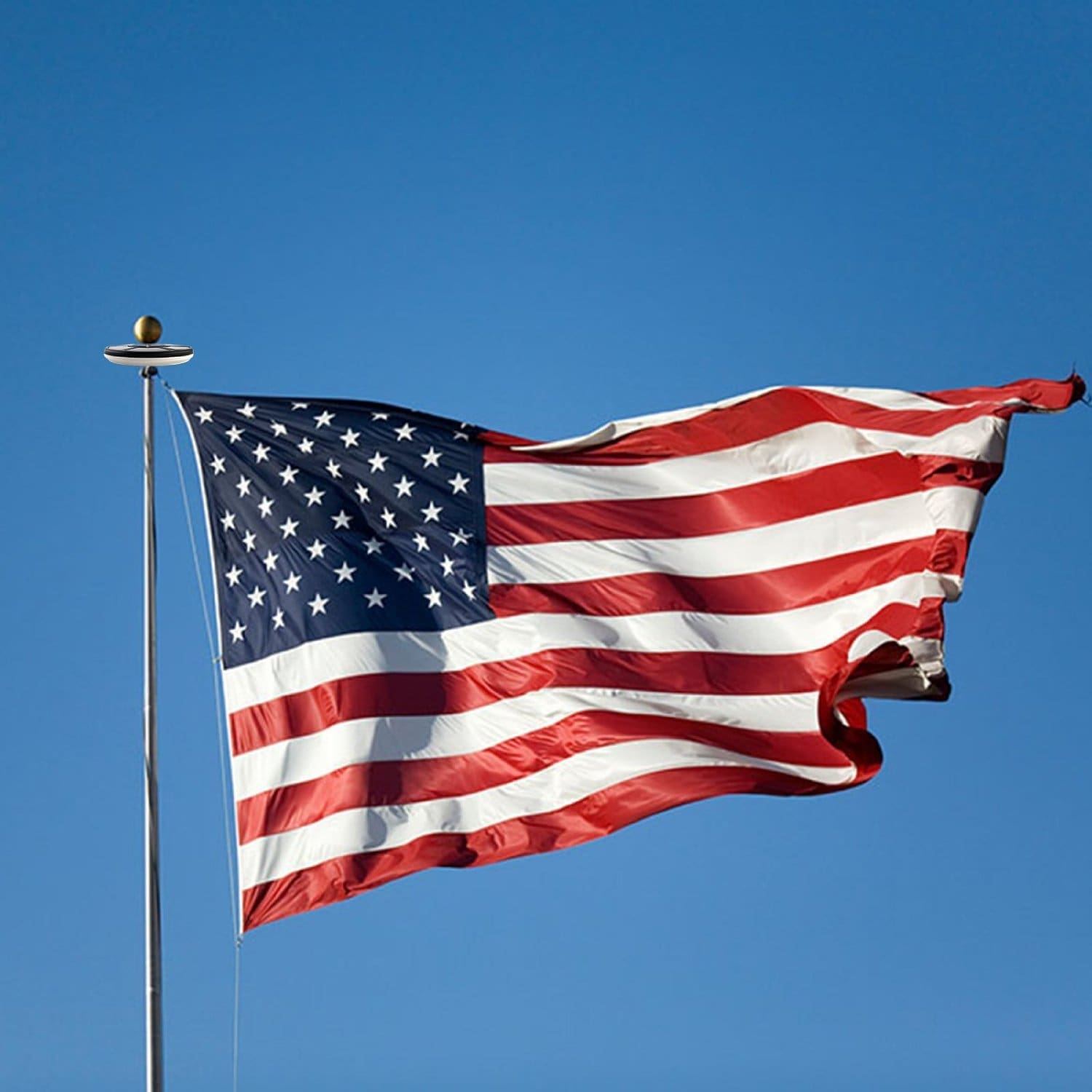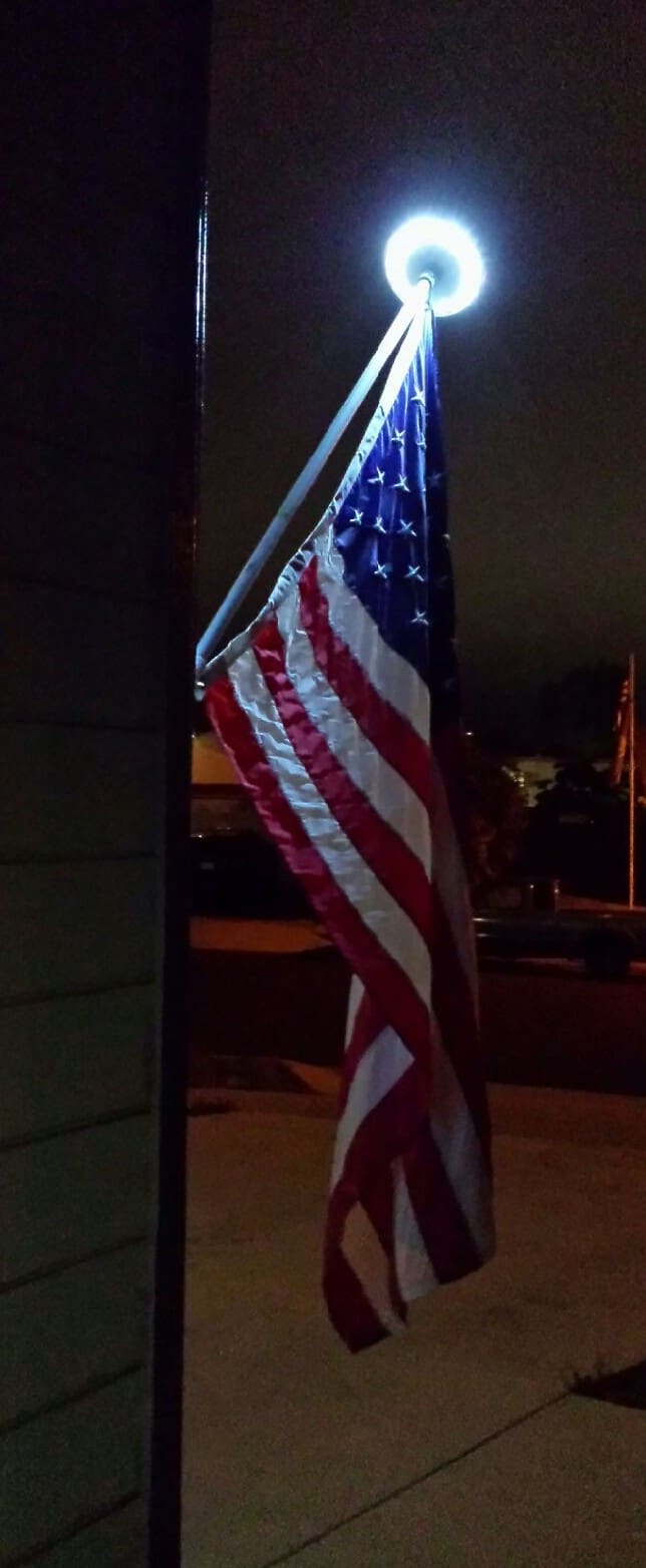 First, the BYB is an add on to YOUR existing Flagpole and Flag. This is a round disk that has six, 5V 600mA solar panels on the top that collect the sun light in the daylight hours and illuminate your flag in the evening. Illuminate as in 120 Lamp Luminous Flux(lm) that provides of 20% More Flag Coverage consistent light.