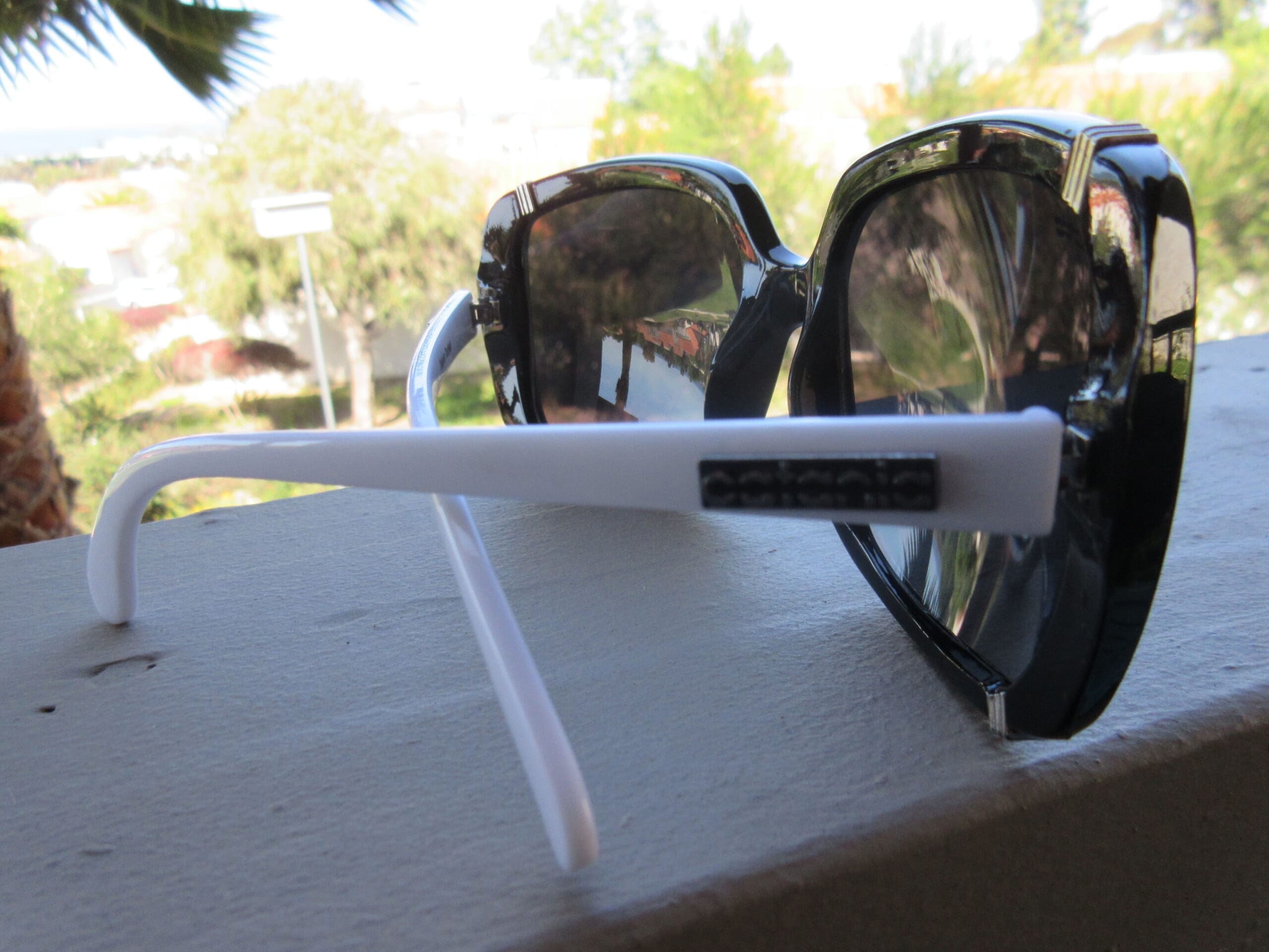 This is a great over sized pair of sunglasses. The Catania Occhiali Sunglasses sport a sturdy plastic frame. I really love black and white combination on this frame. The front of the frame is black with silver accents on the top and bottom of the frame itself. The temples (arms) of the frame are white with a silver Catania tag accent.