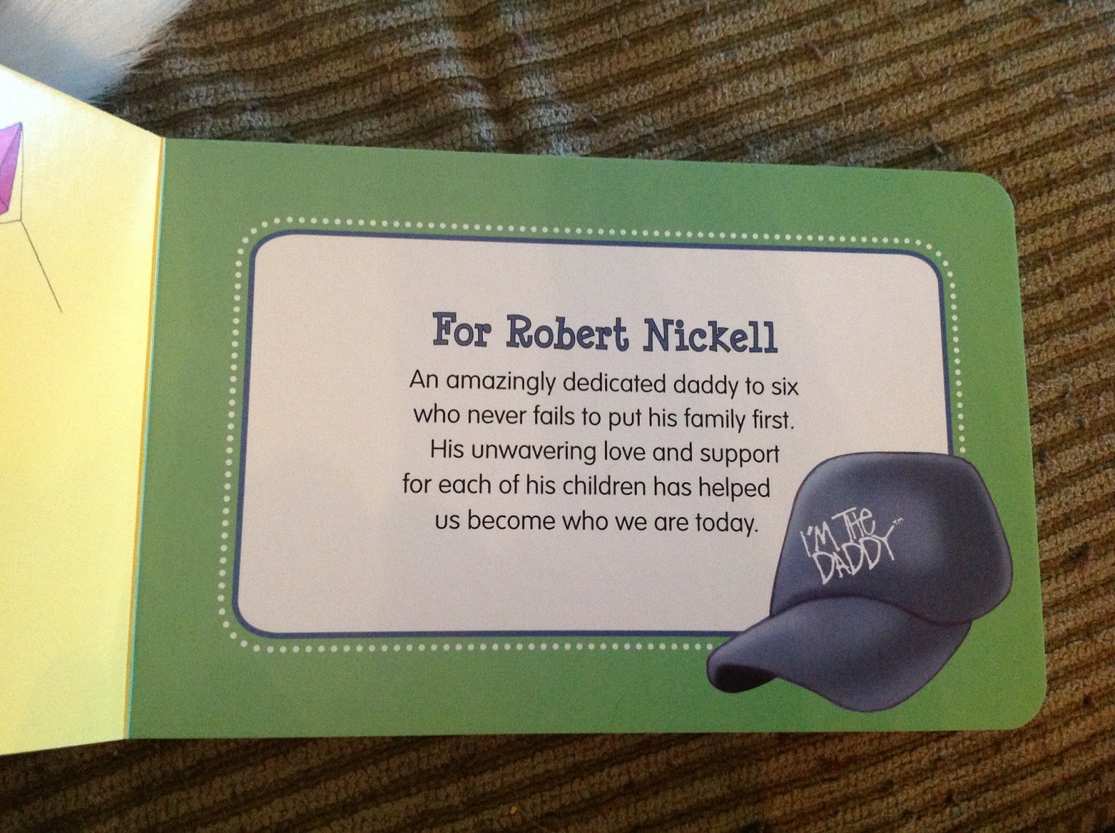 The only negative I have about this book, is the first page. The first full page is a dedication to Robert Nickell, the founder of Daddy Scrubs. I feel the dedication should be smaller and on the inside cover. Where it’s placed now makes the book look as if it were personalized. (HEY! Is this re-gifted?)