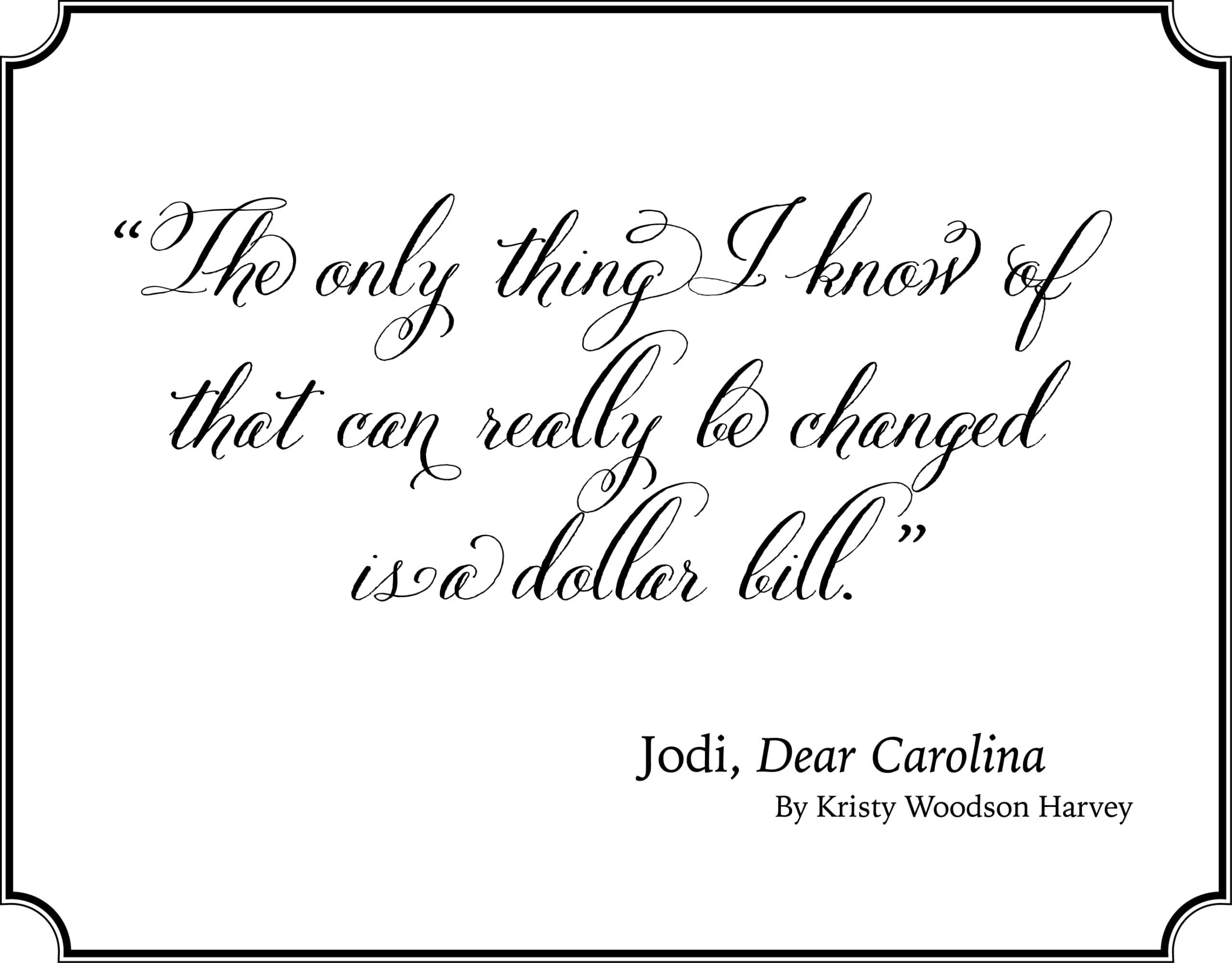 “Dear Carolina is like the Southern women within its pages and those who will love this book, sweet as sweet tea on the outside and strong as steel on the inside. The dialect of the south is so entwined in these pages the reader is transported to a place where women and children are treasured and family rules all. Kristy Harvey is a natural.”—Ann Garvin, Author of On Maggie’s Watch and The Dog Year
