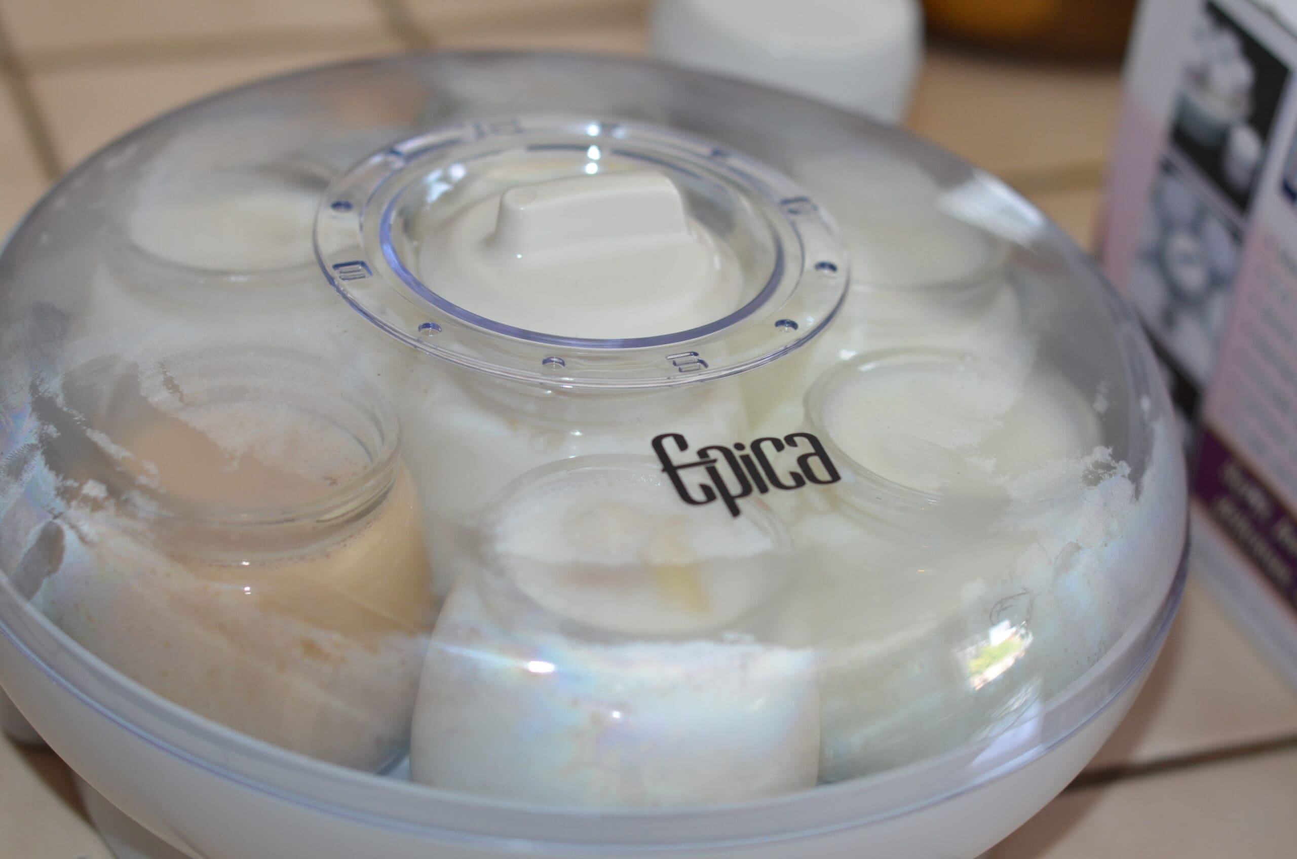 I made YOGURT!!! Seriously! I made yogurt from scratch! I made delicious, thick yogurt and it was EASY!! The folks over at Epica, have done it again! This was SO easy to make!! I made seven 6 ounce jars of yogurt, in my favorite flavors. The instructions that came with the yogurt maker were simple and easy to follow. My first batch was perfect!