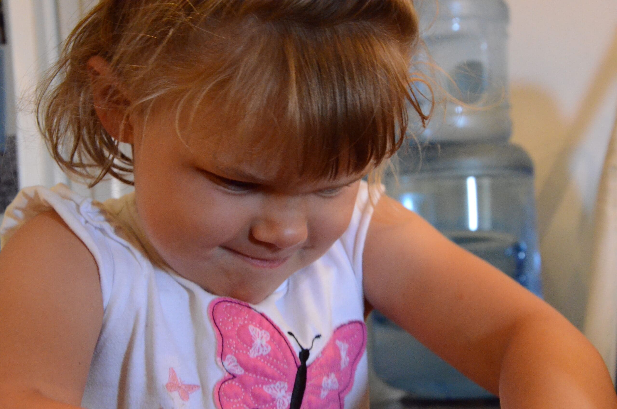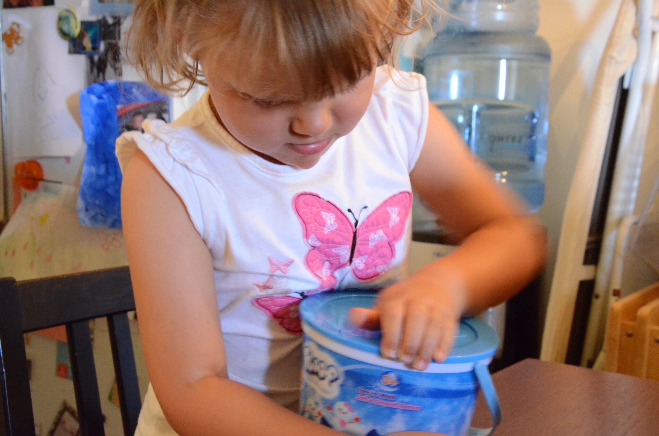 Alice took one look at the bucket of Floof and couldn’t wait to get the lid off. Look at expression on her little face!