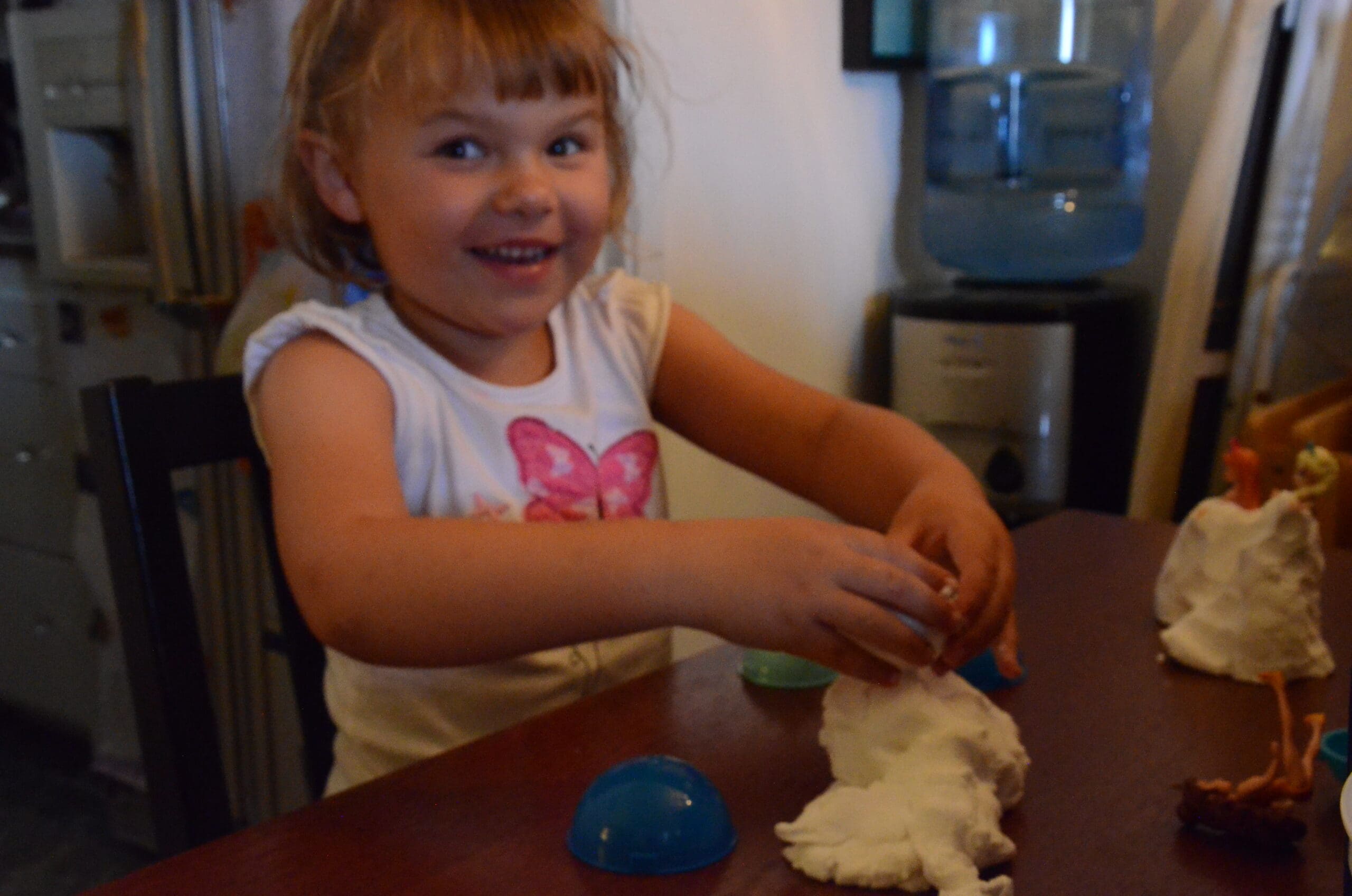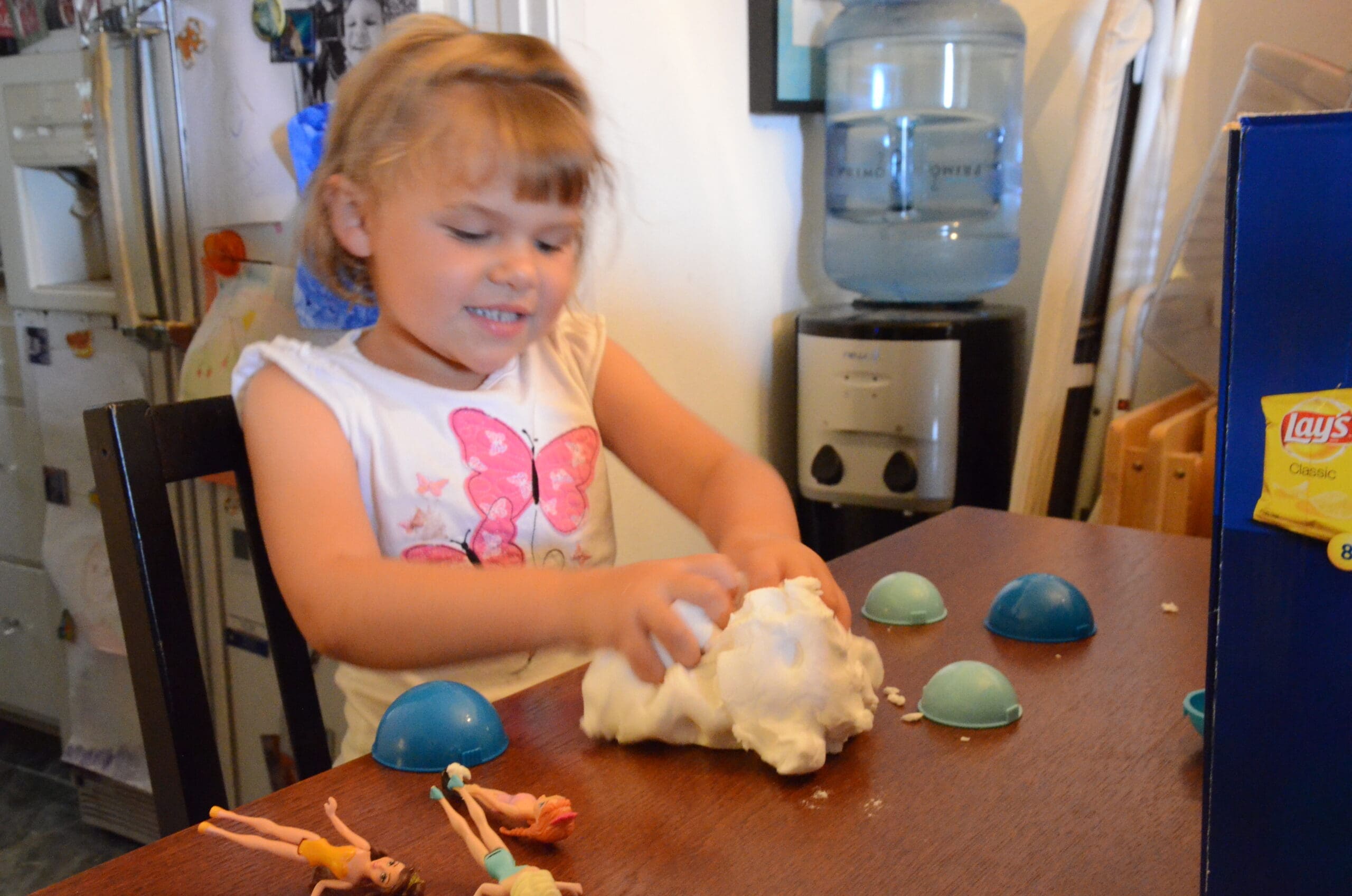 Wanna play in the snow with Alice? The kind of snow that isn’t cold. It doesn’t melt and your Mom won’t care that you are playing with it on the kitchen table!! Meet Floof!![]()