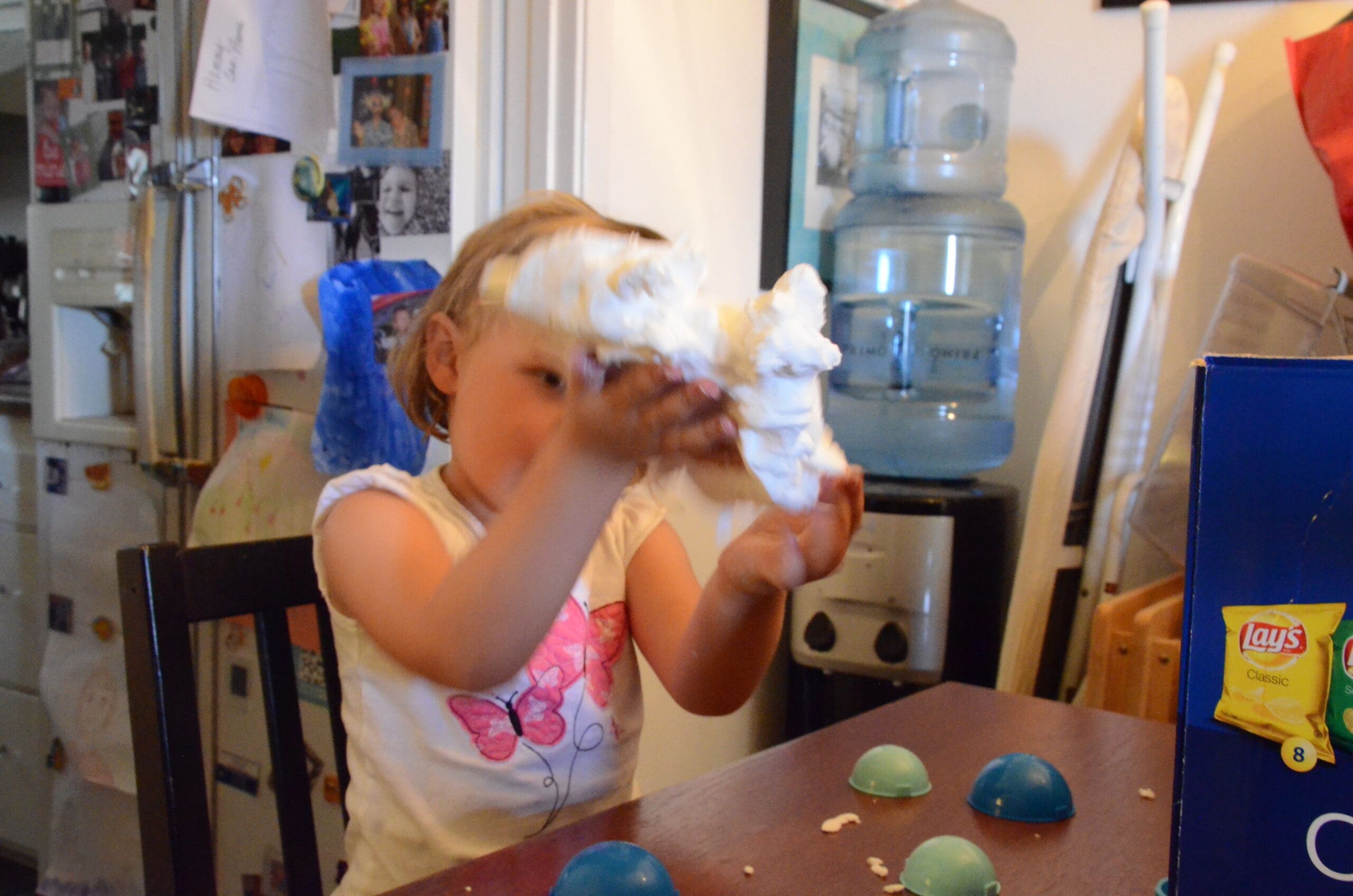 Alice has no whines! She is having a great time with her Floof! I have no whines because Floof is easy to clean up. It doesn’t stick to the carpet, it doesn’t stick to the table or tile floors either!
