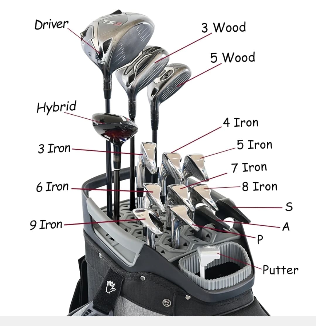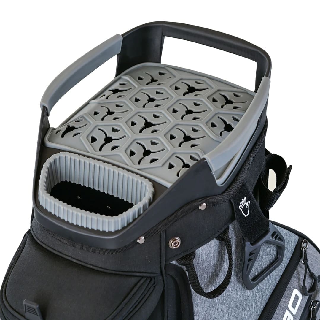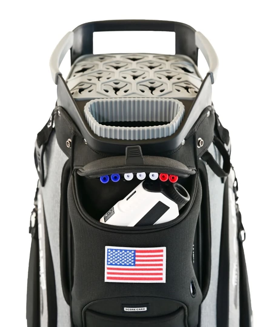 - Latest 15-way molded top with over-sized putter slot keep clubs well organized.