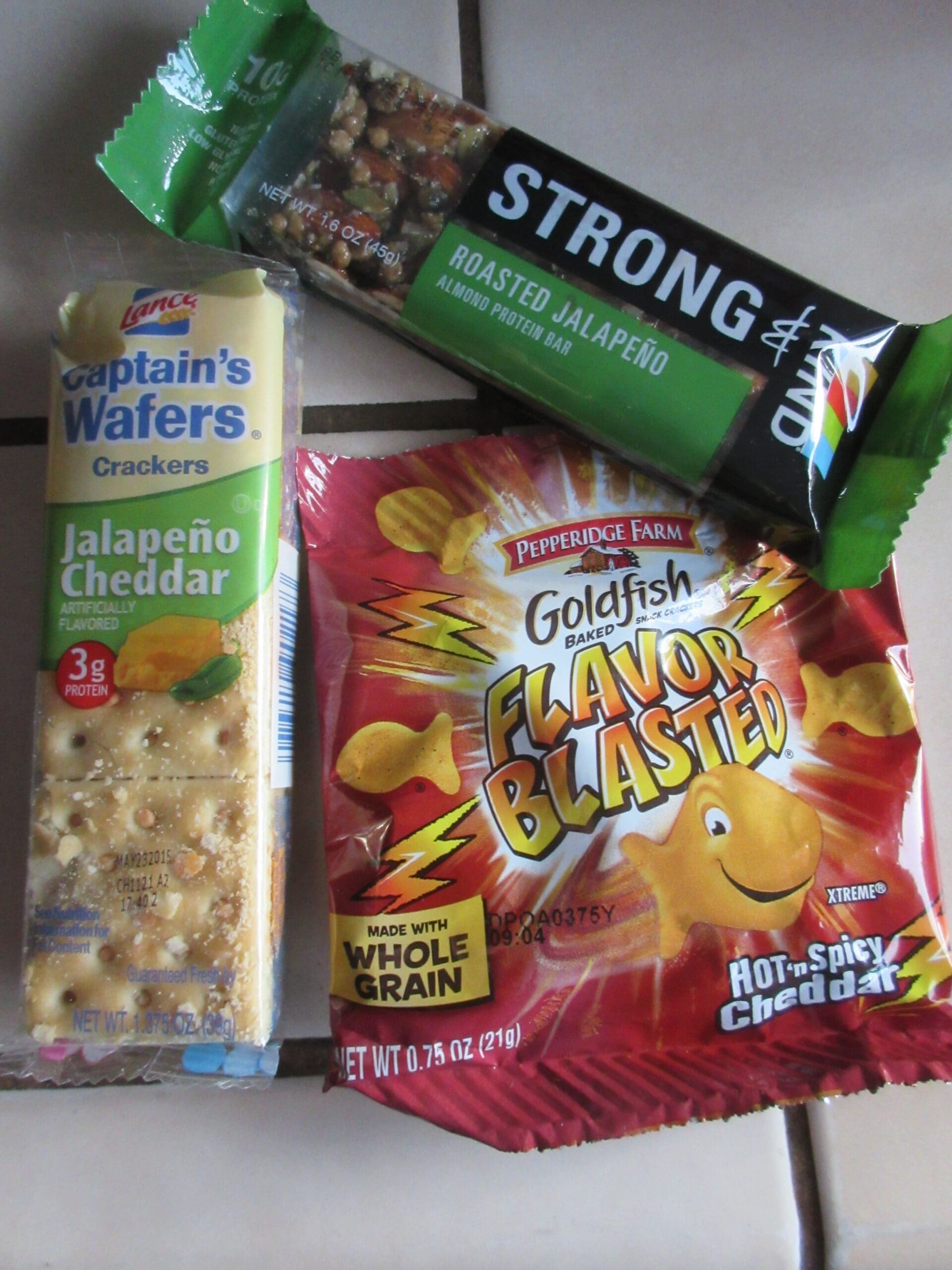 Captain’s Wafers Jalapeno Cheddar Crackers This one sneaks up on you. You take a bite or two thinking it’s just a mild little cracker. Then bam the jalapeno hits! Did I really say that I thought I could stand a lot of spice and heat?? What was I thinking?!