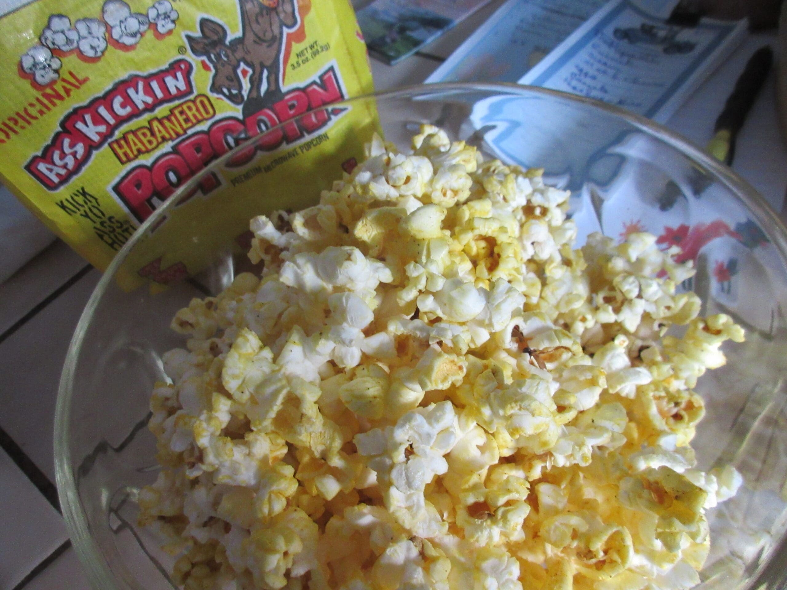 Ass Kickin’ HOLY MOLY!! Hell’s YEAH that’s hot!! Kick Yo’ Ass HOT is RIGHT!! HOLY MOLY!! I ate maybe a half a cup and cried Uncle. That is some hot Ass Kickin’ Habanero popcorn!