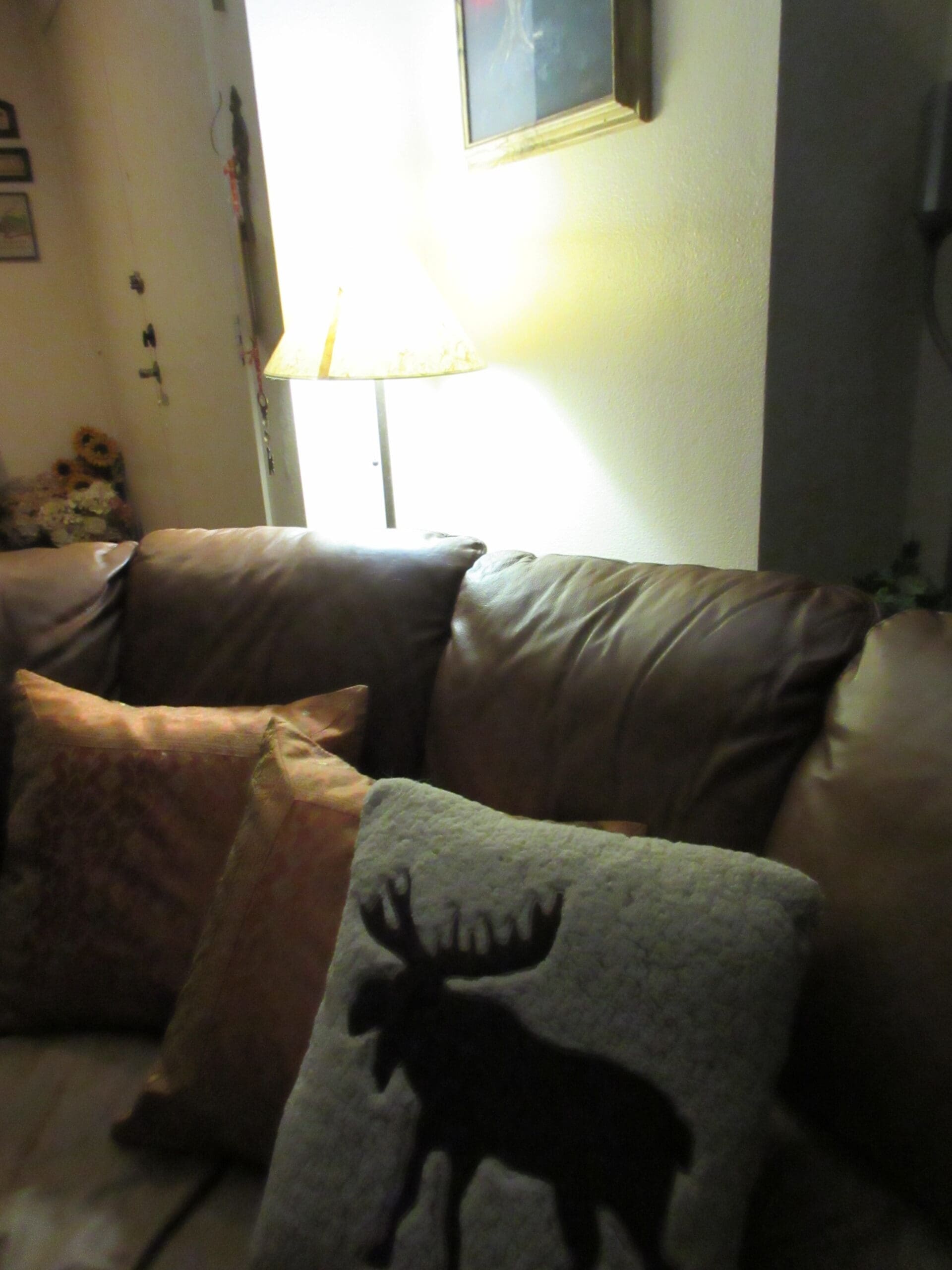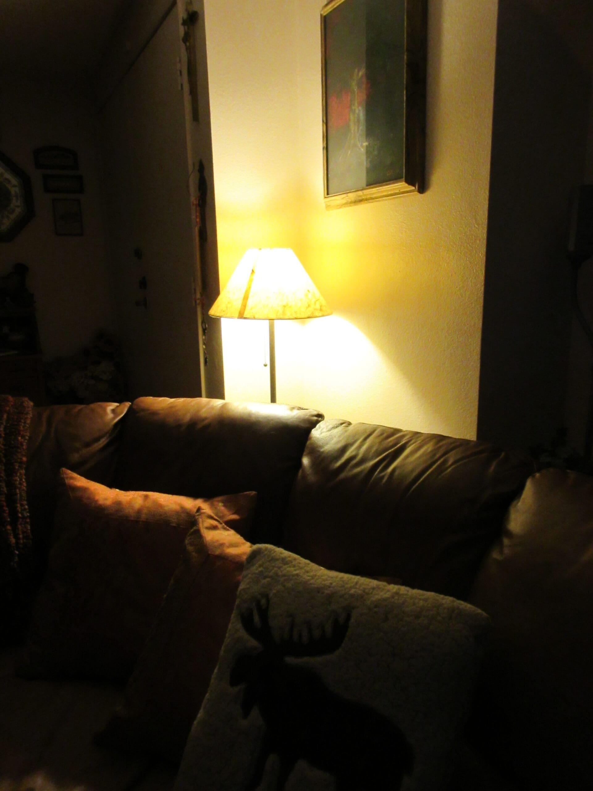 Those pictures were taken in the exact same spot within 30 seconds of each other. The only thing that changed was the light bulb. WOW!!! You couldn’t even see the design on the pillow before. WOW!! I’m blown away at 7 watts of light!