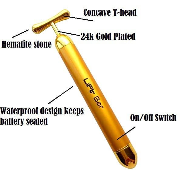 The Lift Bar is coated in 24K Gold and helps with just about any skin condition!! The Lift Bar delivers powerful and efficient results!!! The Lift Bar has a patent pending Hematite stone embedded on the T-Head that greatly enhances blood circulation and healing properties.