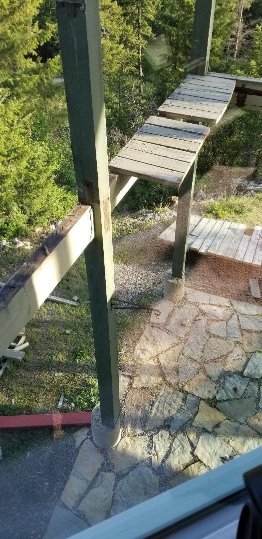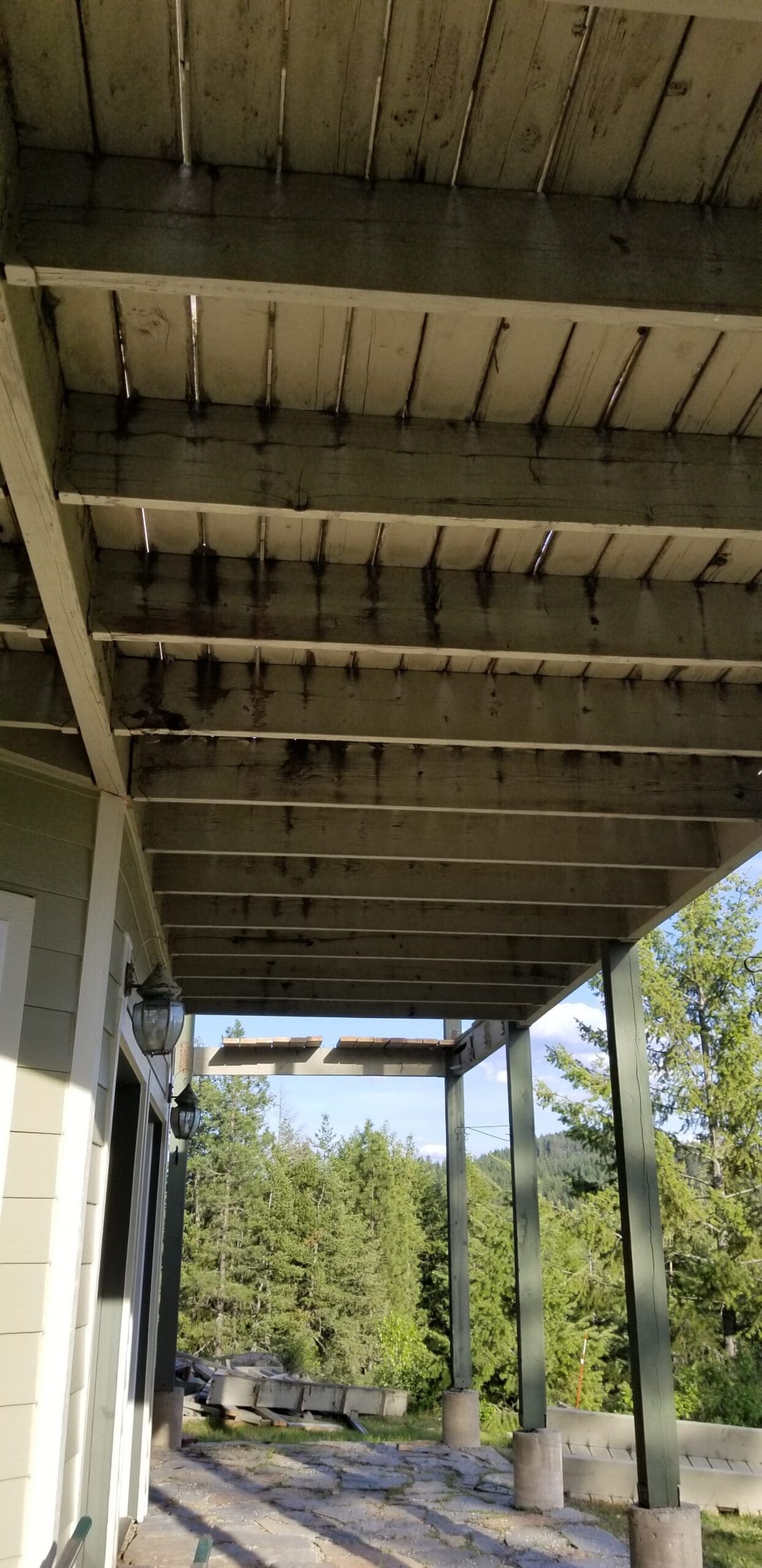 We started to work yesterday on the decks. The contractor truly is amazed that no one has fallen through and down 2 stories. OHHOLYCRAP!! Oh SO very, very bad. Oh SO BAD. I’m on a loop in my head right now, I can’t think of any other words except really, really bad.
