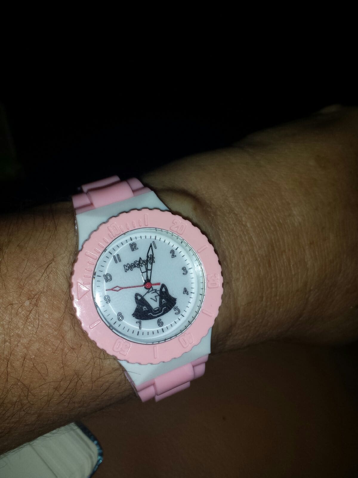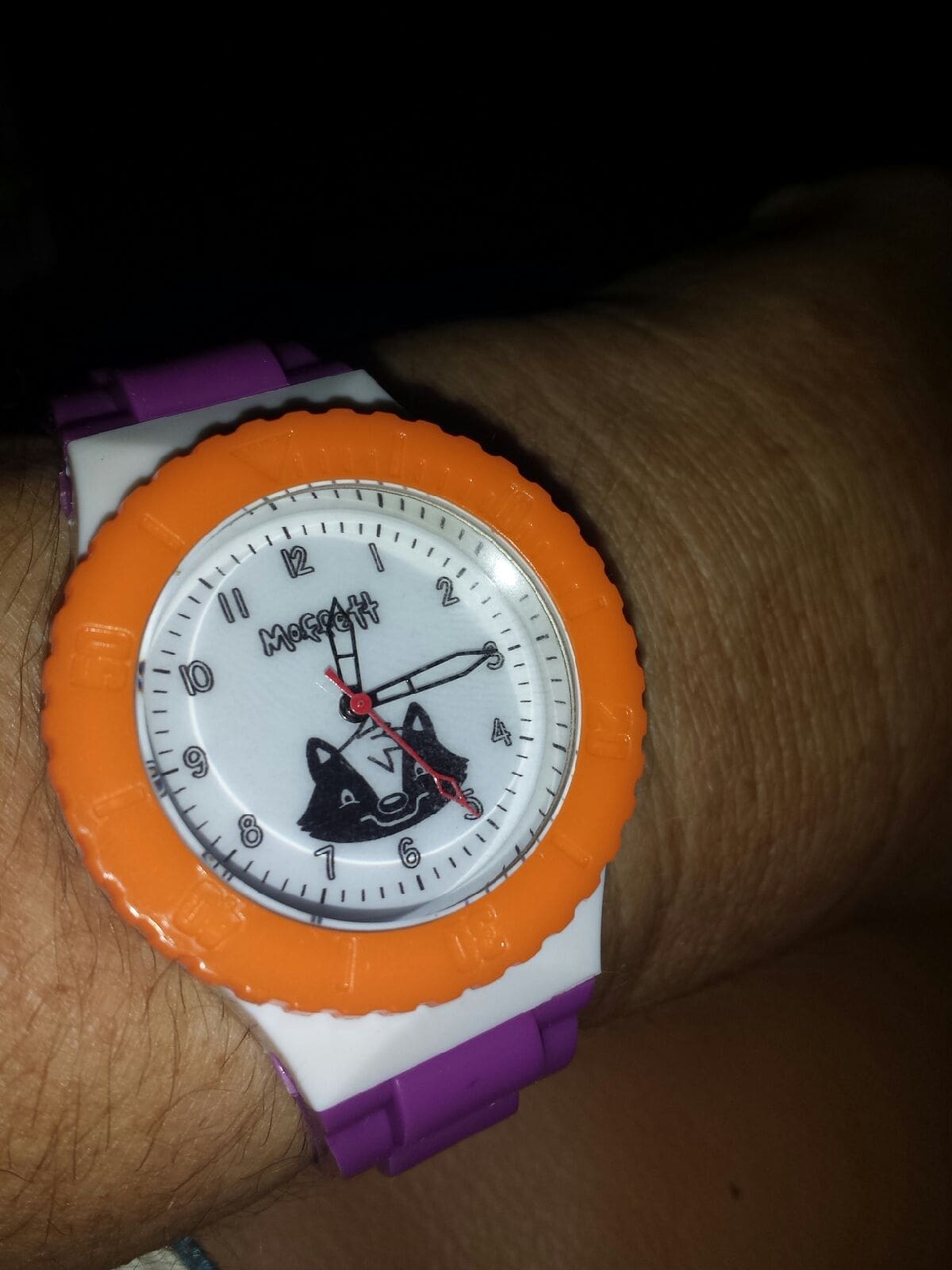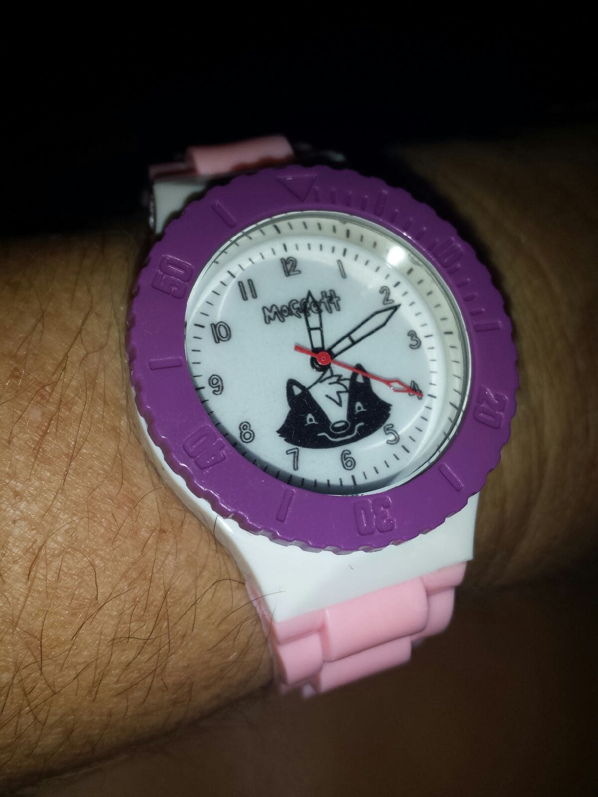 Truly a FUN, watch. The Moffett keeps excellent time, also has a second hand. It’s also waterproof. I know this because at the 4th of July picnic this NaNa was the victim of a water balloon attack. My hair and make up an utter mess but my watch is still perfect!!