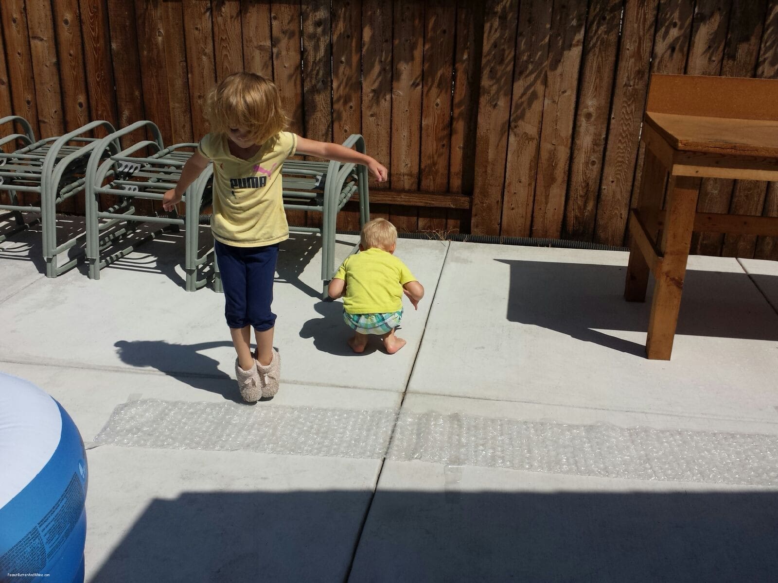 ***Being a product review blogger means I get a LOT of bubble wrap. What better way to recycle than tape it to the patio and set the grandkids to popin!! DO YOU KNOW how long that took them?? Long enough that NaNa finished a HOT a cup of coffee and get caught up on some emails. I’m BRILLIANT I tell ya…. BRILLIANT!!!