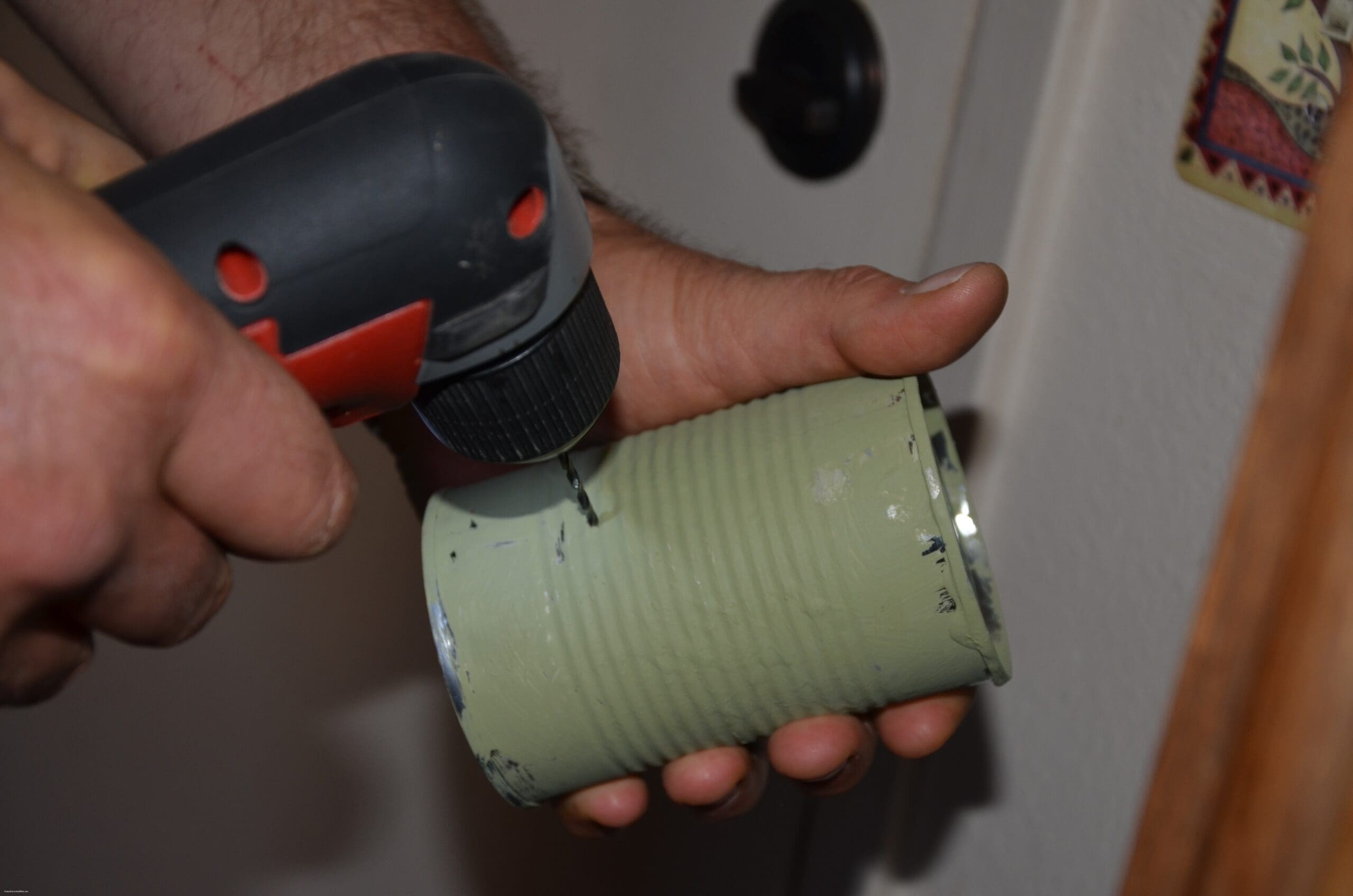 Paint the cans let dry completely. Add a second coat. Since the kiddo’s did their own I’m thinking even 3 coats to be certain all the can is covered in paint. NaNa was able to make this into a two day craft because the paint had to completely dry.