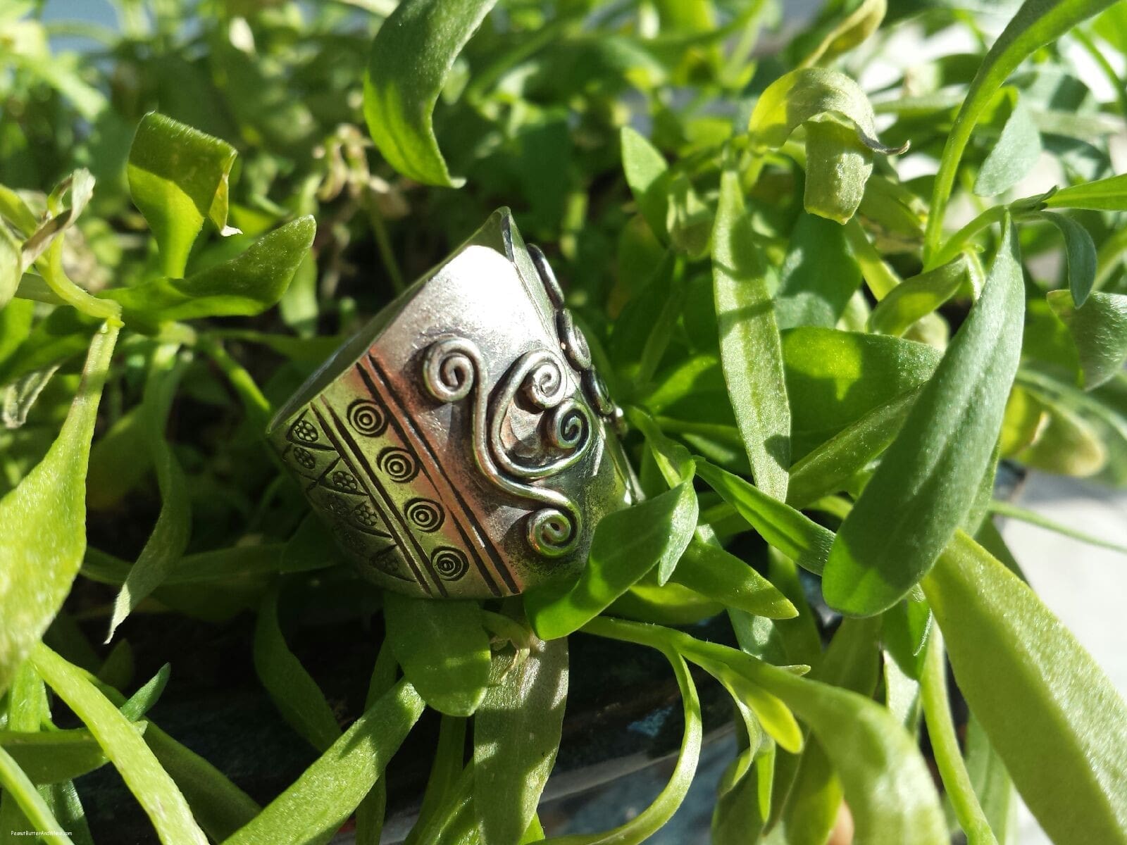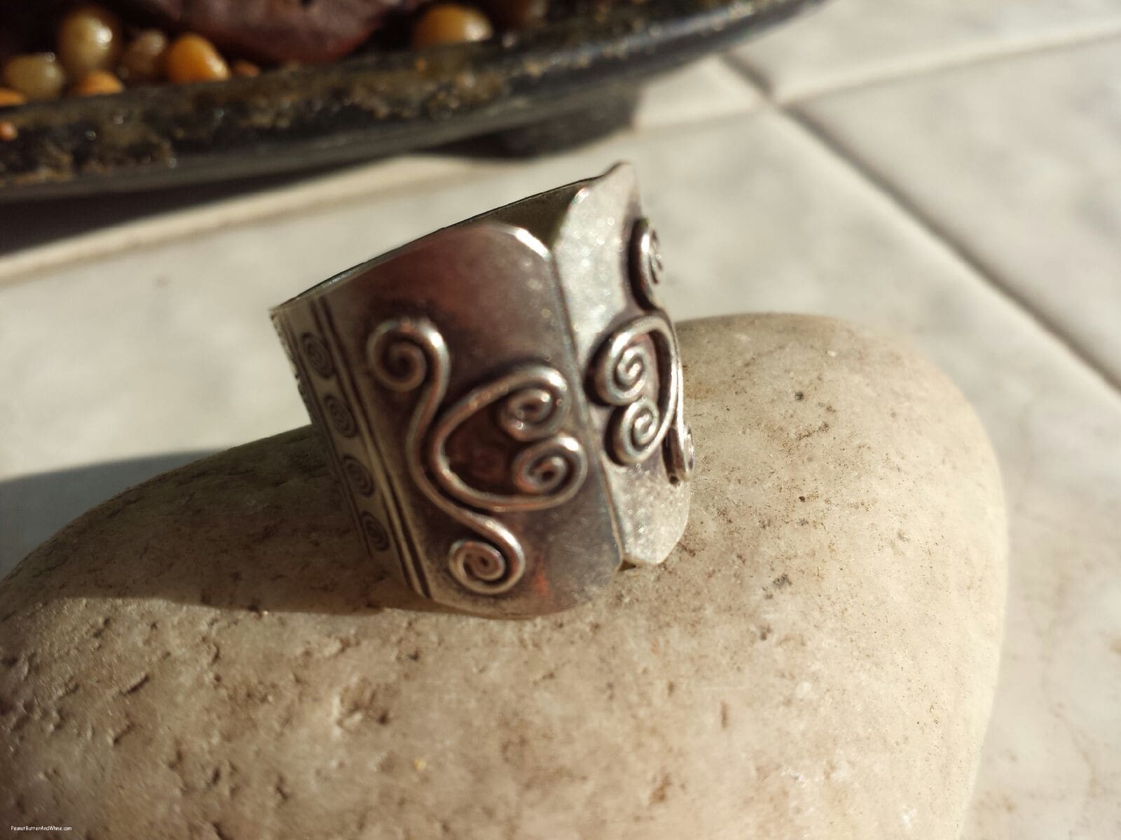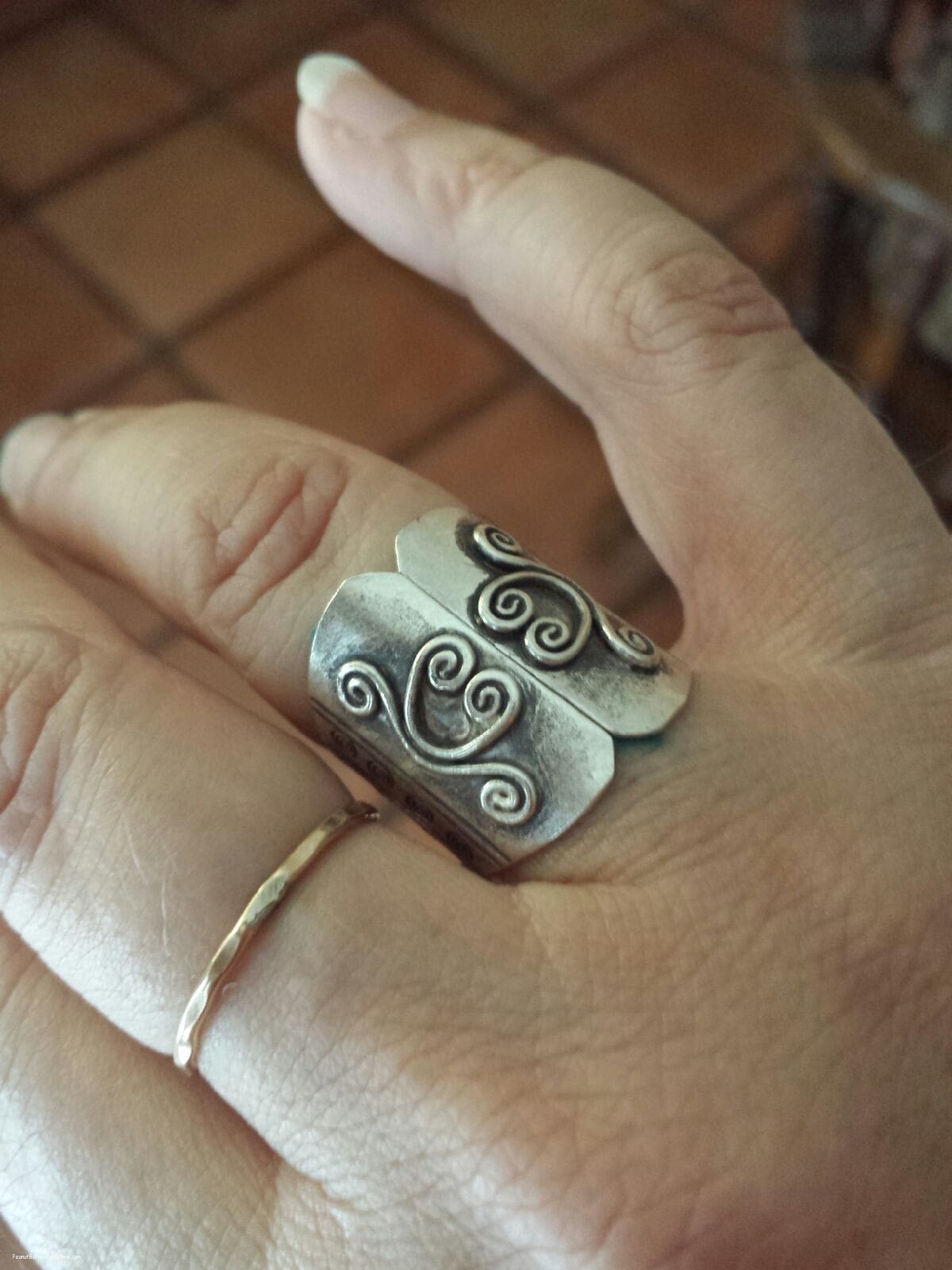 I am THRILLED with my latest treasure from Novica. This ring is called: Proud of Mae Ping. It’s PERFECT!!! This ring is .925 Sterling Silver, with ribbons of sterling silver that “flow like the Mae Ping River”. This is a wide silver band. Crafted by hand by Achara. This beautiful ring reveals rich sterling textures and hill tribe design motifs. The ring is tapered so it’s a comfortable fit.