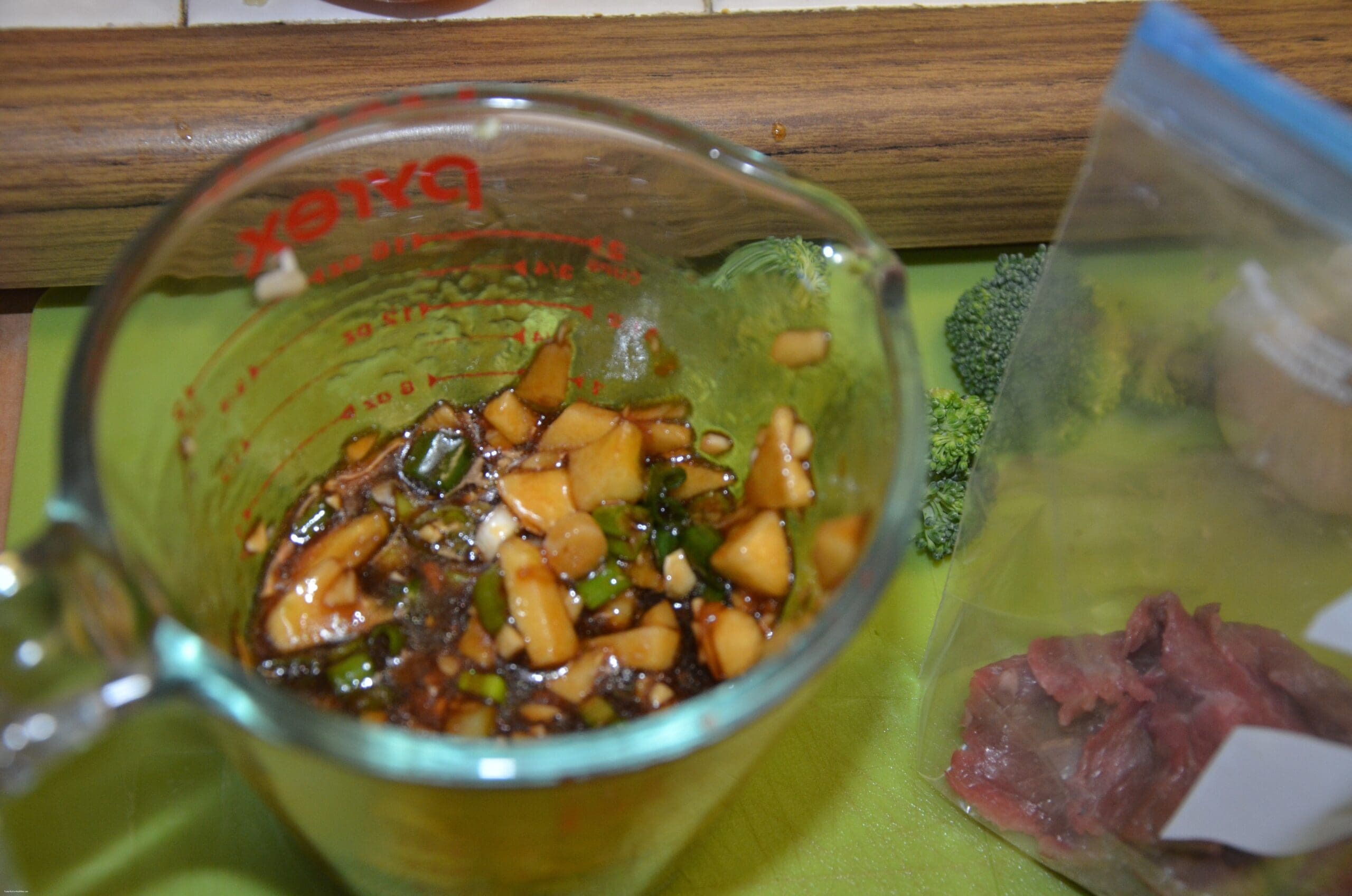 1/2 cup Chinese Broccoli 1/4 cup chopped for the marinade 1/4 set aside.