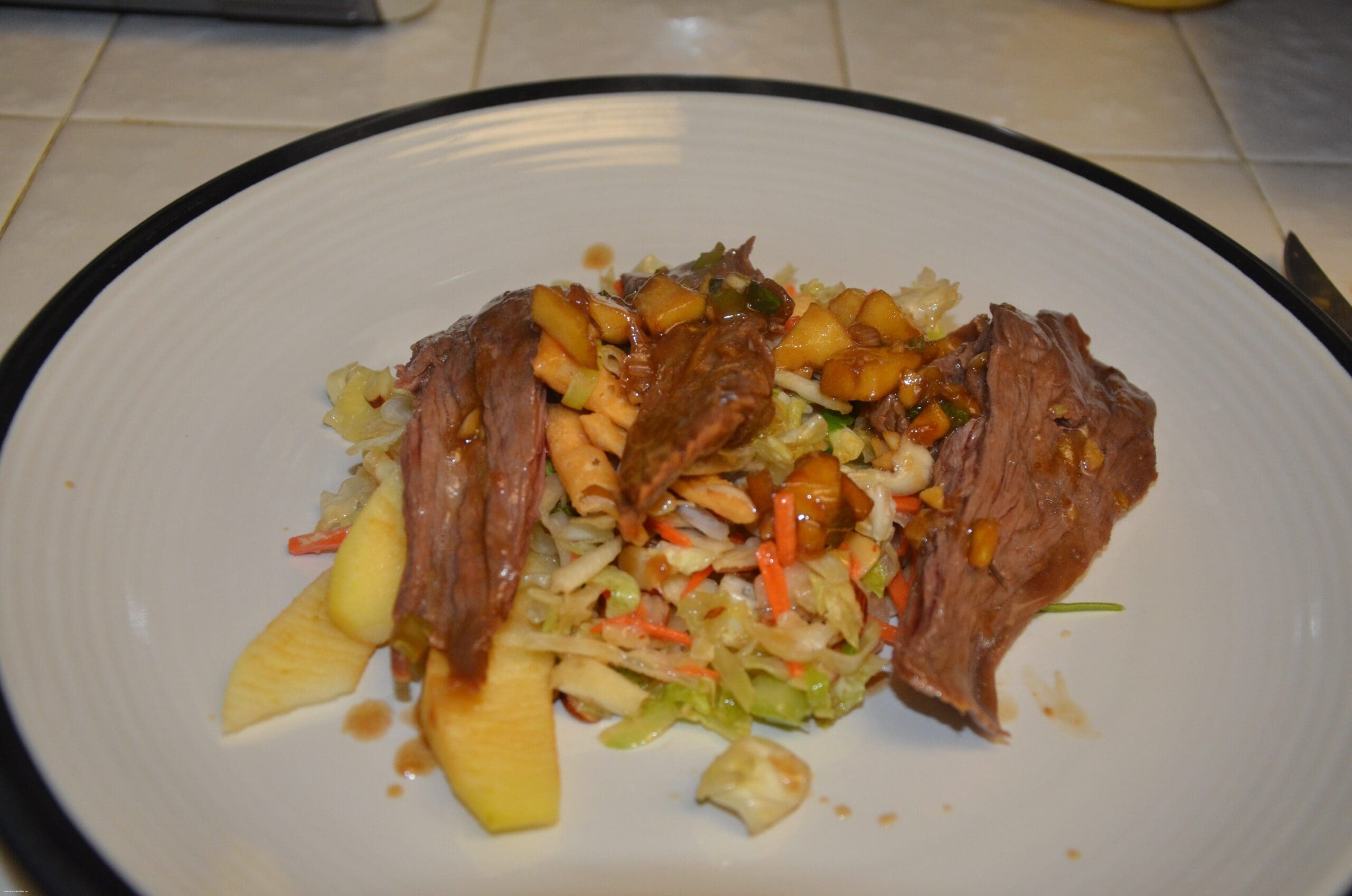 Serve with Asian Salad. DELICIOUS!! The remaining Flank Steak I put over the remaining salad for the next afternoon. It was even better!! I’m feeling inspired!! What about you? Will you enter P.F. Changs Goodness of Fall contest??
