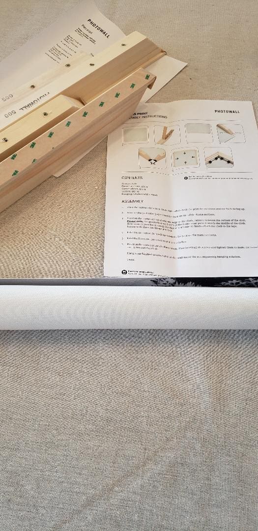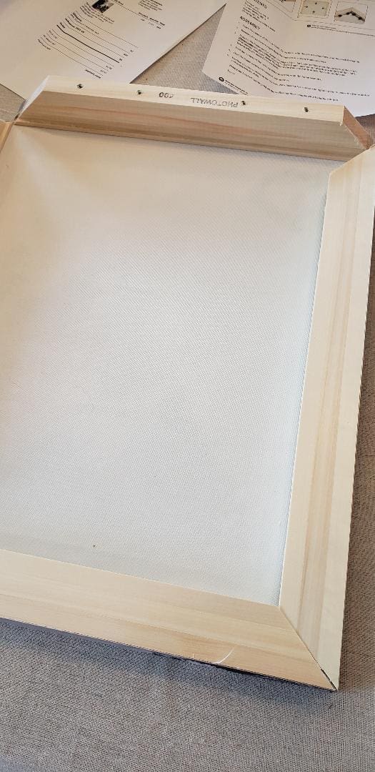 Packaging was excellent. The canvas comes unmounted. But with the easiest mounting I’ve ever used. EVEN with my arthritis I found this easy to assemble. Instructions that arrive with the canvas are super easy to follow. The wood is predrilled, super strong 3M tape and large knobs to attach the metal L pieces. You can NOT mess this up!!