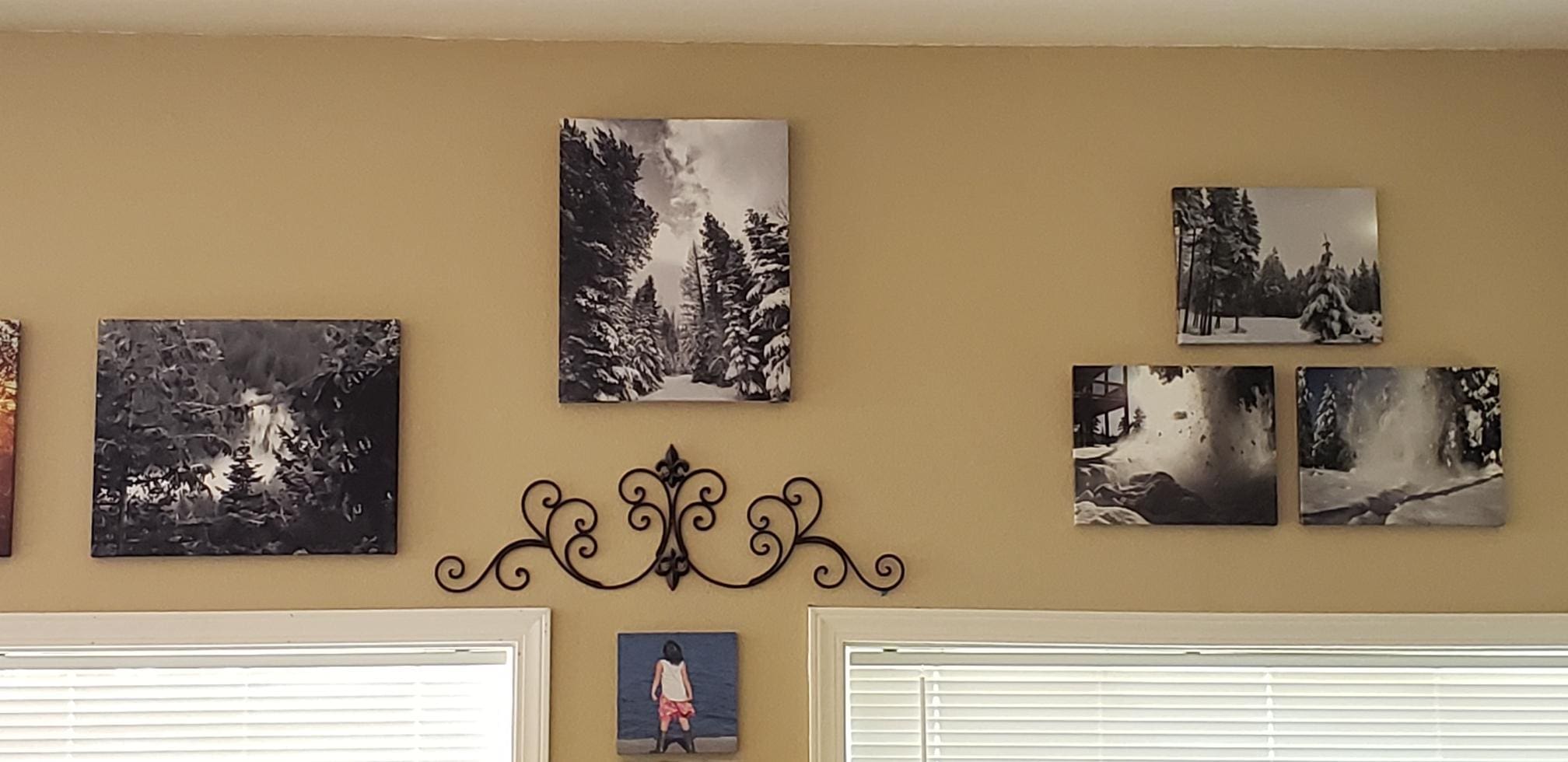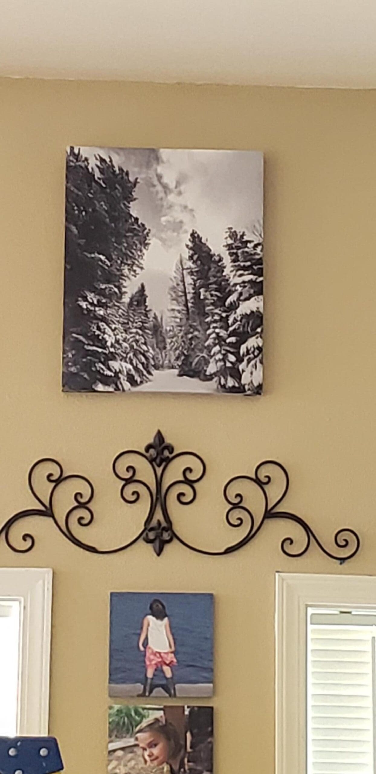 However, I have that ‘one spot’ that needed something. I wanted a canvas that included snow and trees to go with my other canvas pieces. After looking around PHOTOWALL, I saw the option to create my OWN!!  YEE HAW!!!  Decision made, I will use a photograph of trees slightly covered in snow that I had taken myself.  WELLLLLL, y’all know how much I love my canvas prints taken right here on top of our little mountain. Doesn’t this picture scream (wait, that’s the wrong adjective!!) project tranquility and calm? Not to mention that it is sooooooo pretty!