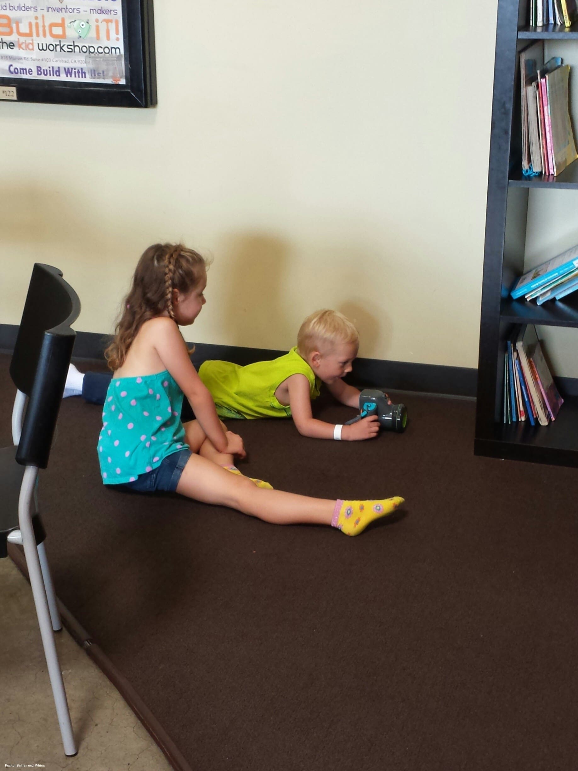 If you are looking for a gift for a little one in your life I’ve got it!! SERIOUSLY!!!!! I’m not sure who is having more fun with this ShowCam by PlaySkool the adults or the kids!! The ShowCam is FUN, EASY TO USE and TOUGH!!! Eli is 3, and he must have dropped the ShowCam a dozen times on the concrete floor while we were at PlayWerx in Carlsbad during our last play date. Alice is 2 and she’s dropped it down the stairs AND on the pavement. Not only does the ShowCam still work like a dream but the camera itself doesn’t have a chip, ding or mark on it!! Leave it to PlaySkool to make a tough and rugged, AWESOMELY FUN toy!!