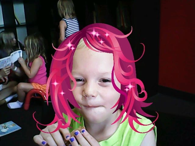 Hi my little girl has a show cam and there is one thing I can’t figure out! On a couple of animations there are spots for 2 different faces but we can’t figure out how to get a picture into the 2nd spot! Have you figured it out?