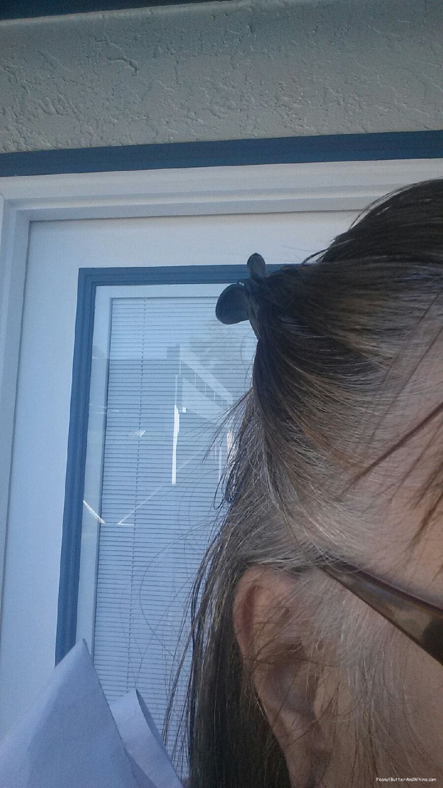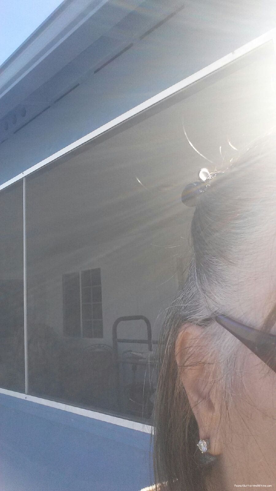 Ohhhh what I do for my blog followers! Y’all should be very impressed, I don’t normally show off my gray like this. Also, please note, I can’t take a selfie worth a grain of salt. WHY couldn’t I get a clear shot?!??! I walked all around the yard, the house and finally the car!! Just to get a picture that gives you the basic idea.