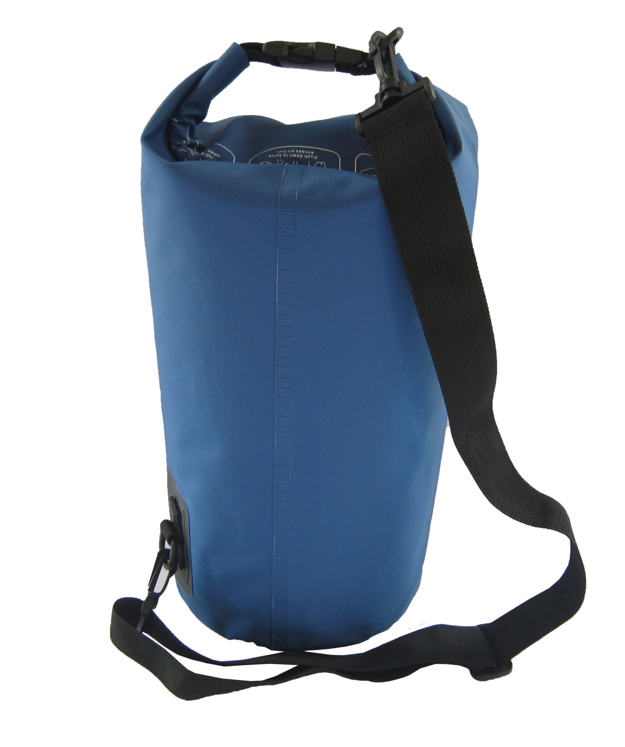 This is the GREATEST fully waterproof bag that is a MUST have especially for summer! This is a big bag. 8″ by 16″. The bag is a beautiful bright blue with a single, wide, adjustable black strap so that you can wear this over your shoulder.