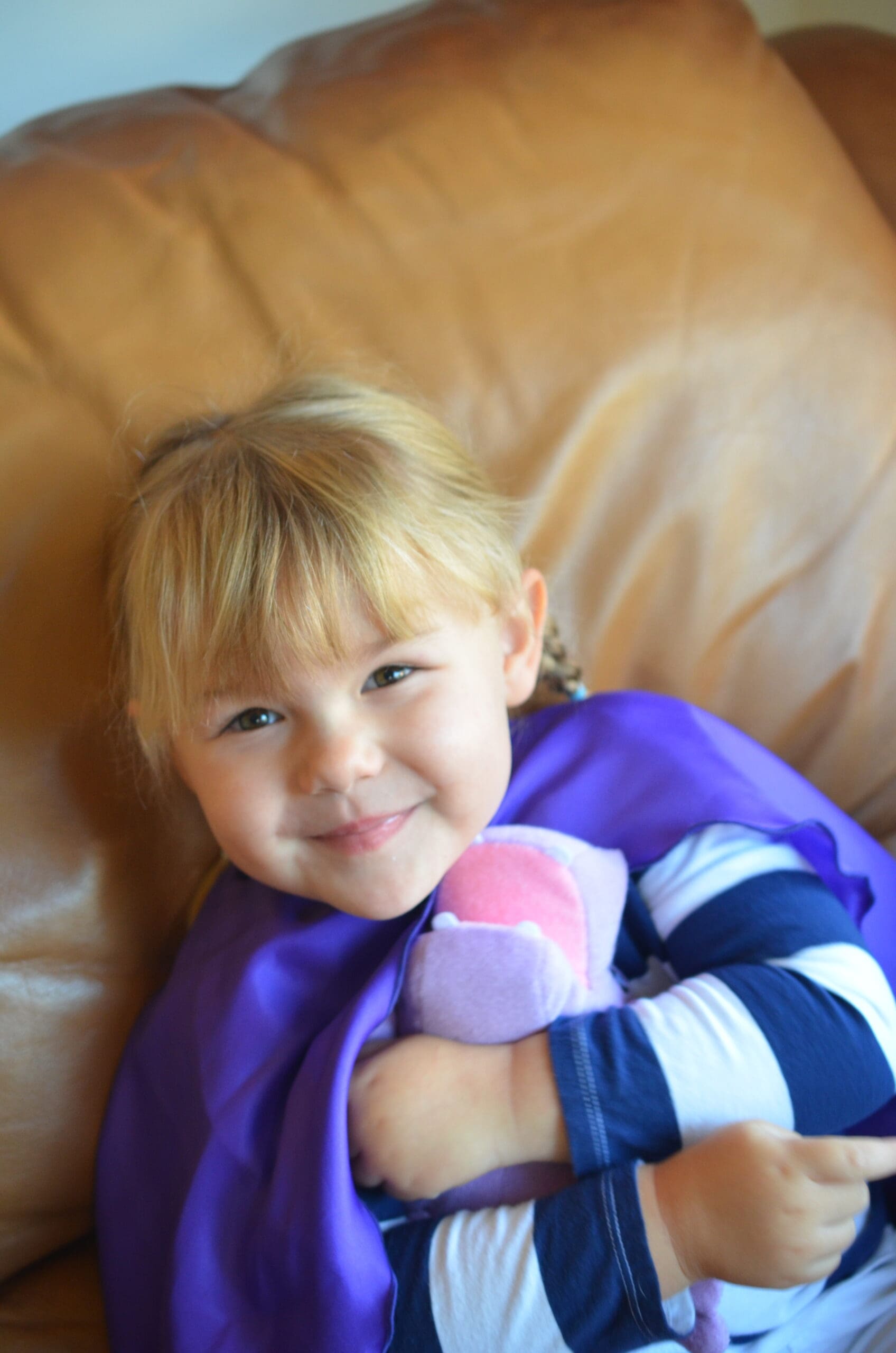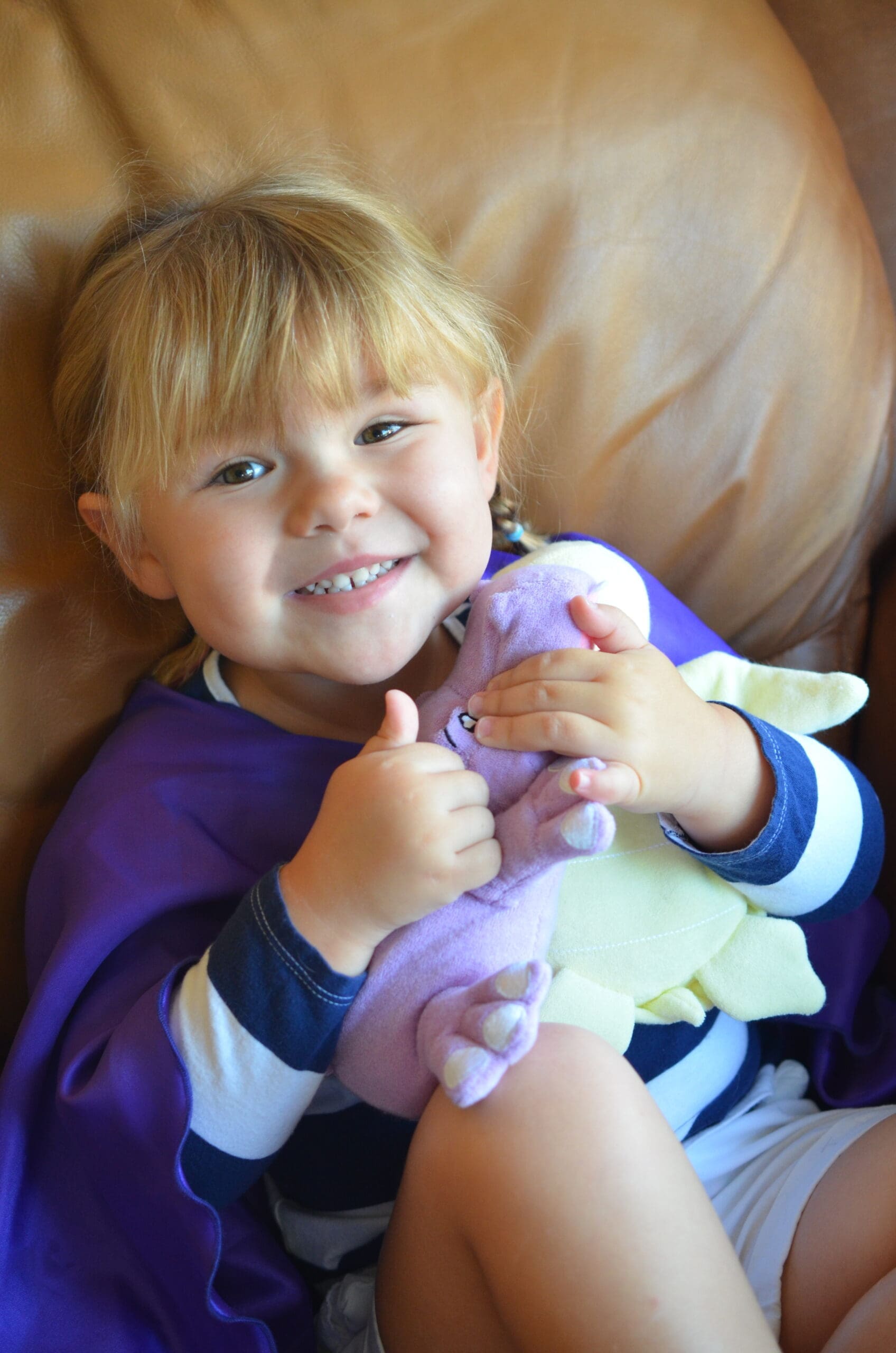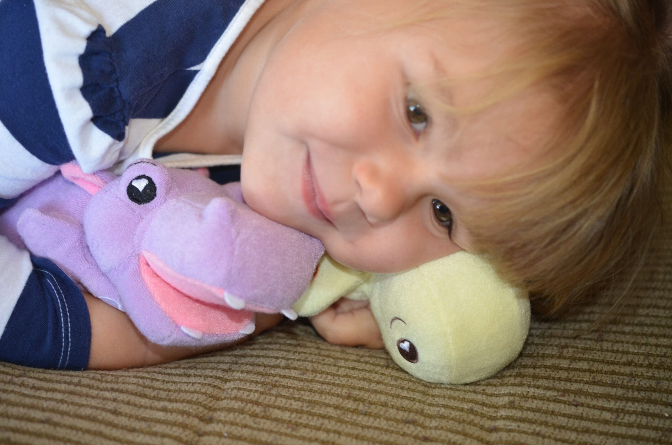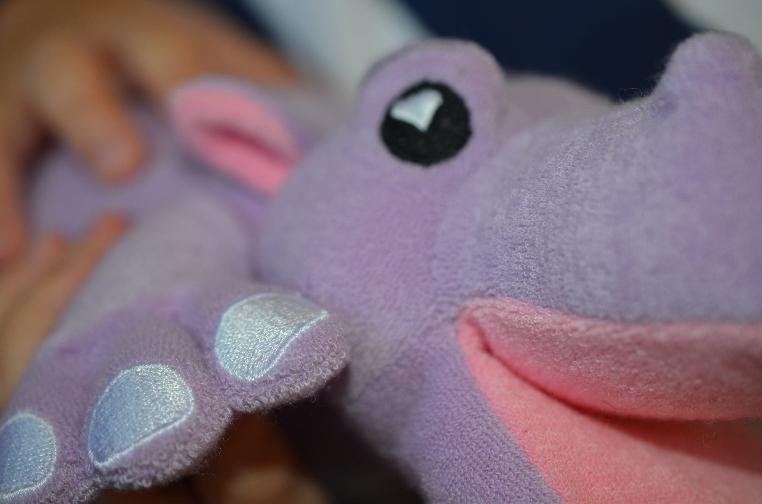 Soapsox characters are made with super soft terrycloth exterior and a porous sponge interior. Alice LOVES feeding Harper (An adorable purple hippo) the soap. Then she squeezes and squeezes Harpo and voila! Suds!! There are also finger pockets in the front feet so Alice can use Harpo as a puppet. The little finger pockets are actually there to give you have a little extra scrubbing power if you need it. Ya know… for those carrots growing in the ears!! Another great feature is the little loop for the rope (that is included) so you can hang your sponge out to dry!!