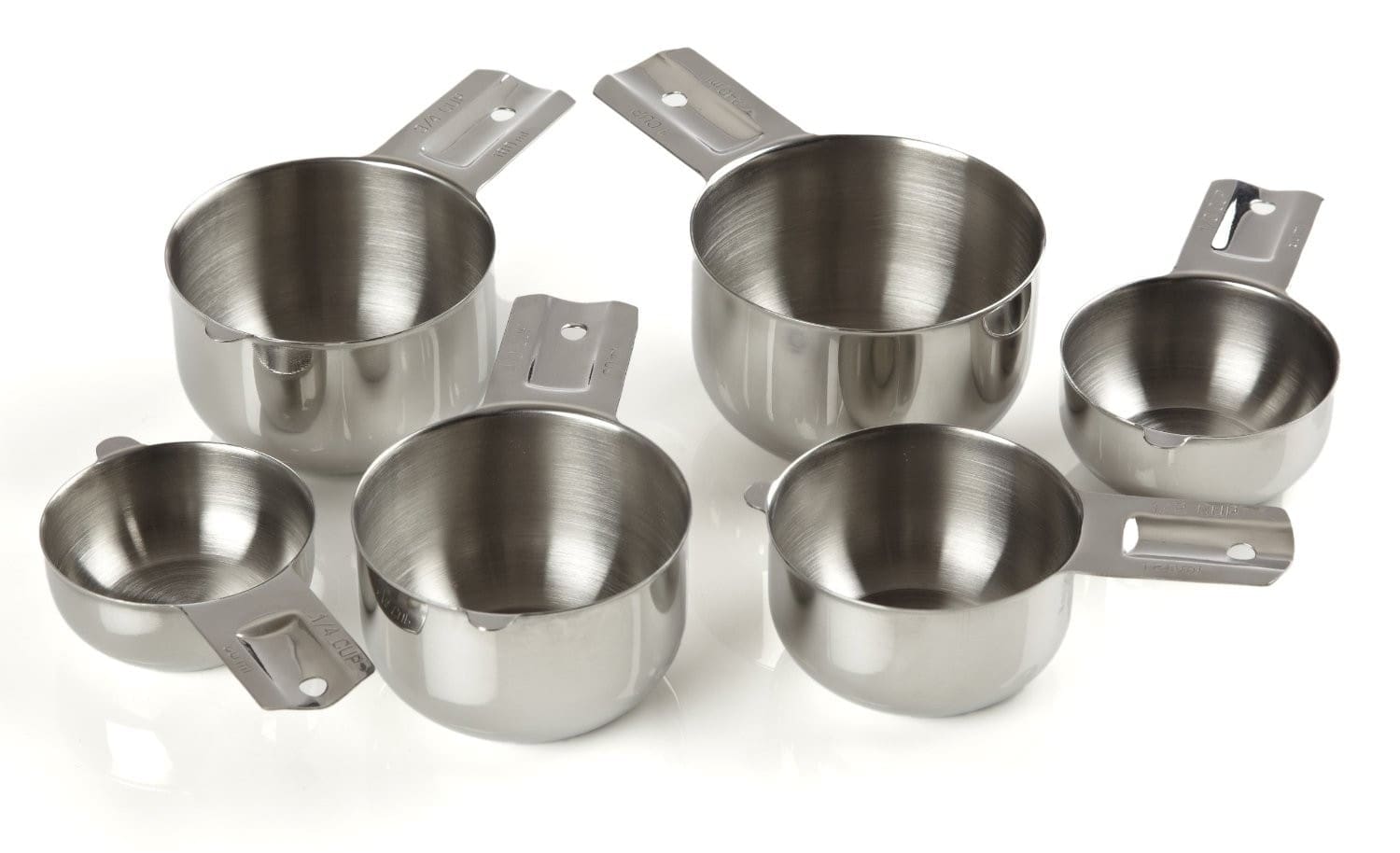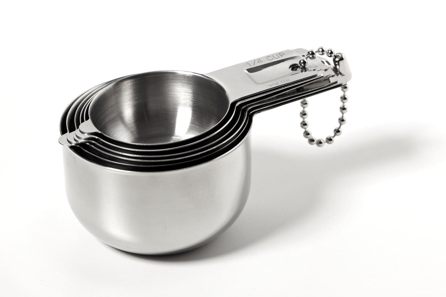 Unlike my old measuring cup these are cast as one solid piece! The handles are not going to ever fall off!! Made with 18/8 stainless steel means my new measuring cups won’t rust, scratch or crack!! The cups all have weighted bottoms for extra stability.