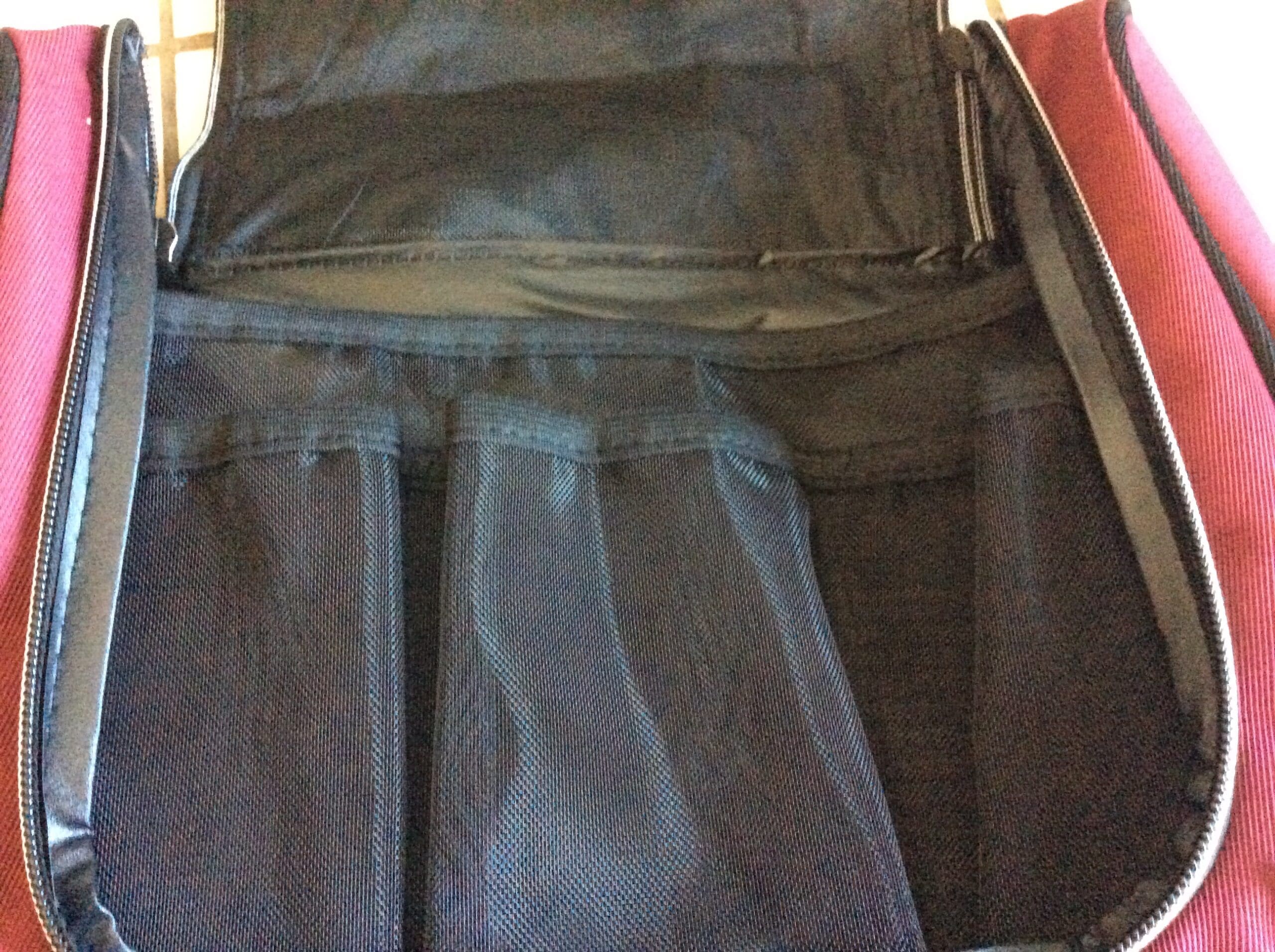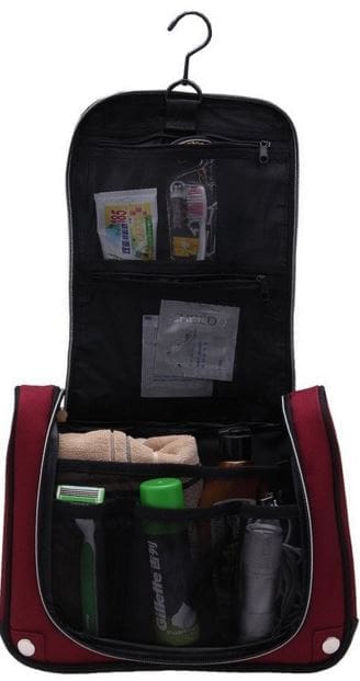 I have the perfect gift for the traveler in your life!! This is the SUNROLAN Hanging Cosmetic Carry Case Toiletry Travel Kit. The case comes in red or black. The red is a nice deep maroon red with black accents.  This stylish bag is very well designed starting with a very heavy-duty zipper with two pulls so you can open just one side if you wanted to.