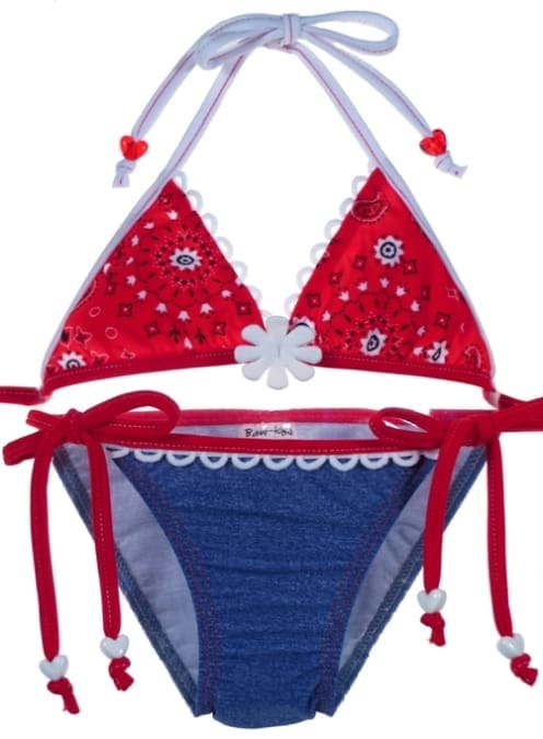 I always find bikinis for little girls rather disturbing. On a lighter note, the shirts are a great idea to prevent sunburn.