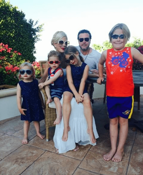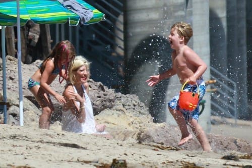 Mystery Girls star Tori Spelling was spotted with husband Dean McDermott and their four kids -kids – Liam, 7, Stella, 6, Hattie, nearly 3, and Finn, nearly 2 – in Malibu, Calif. on Saturday (August 16). Joined by friends, the famous family hit the beach for some fun in the sun.