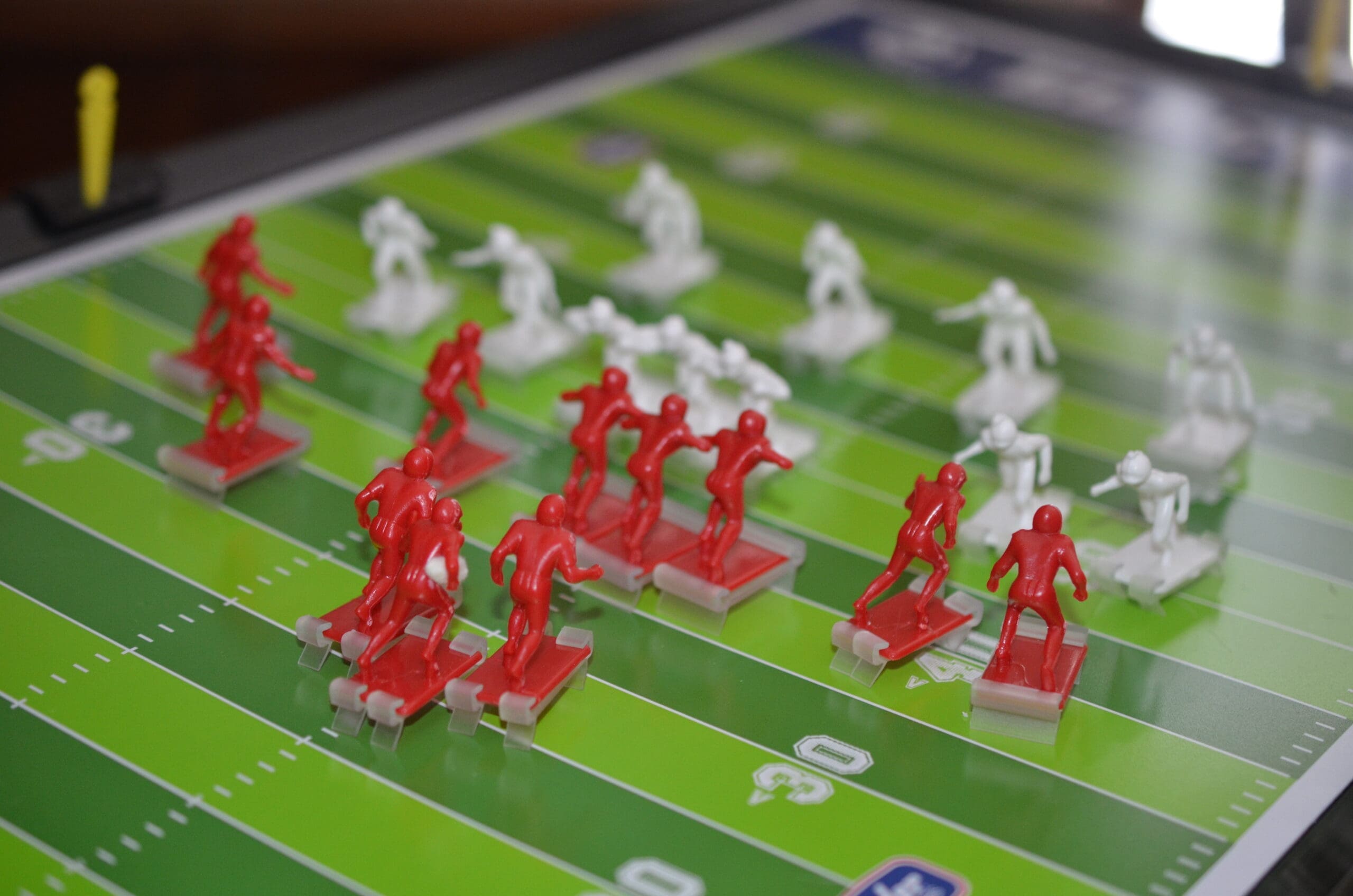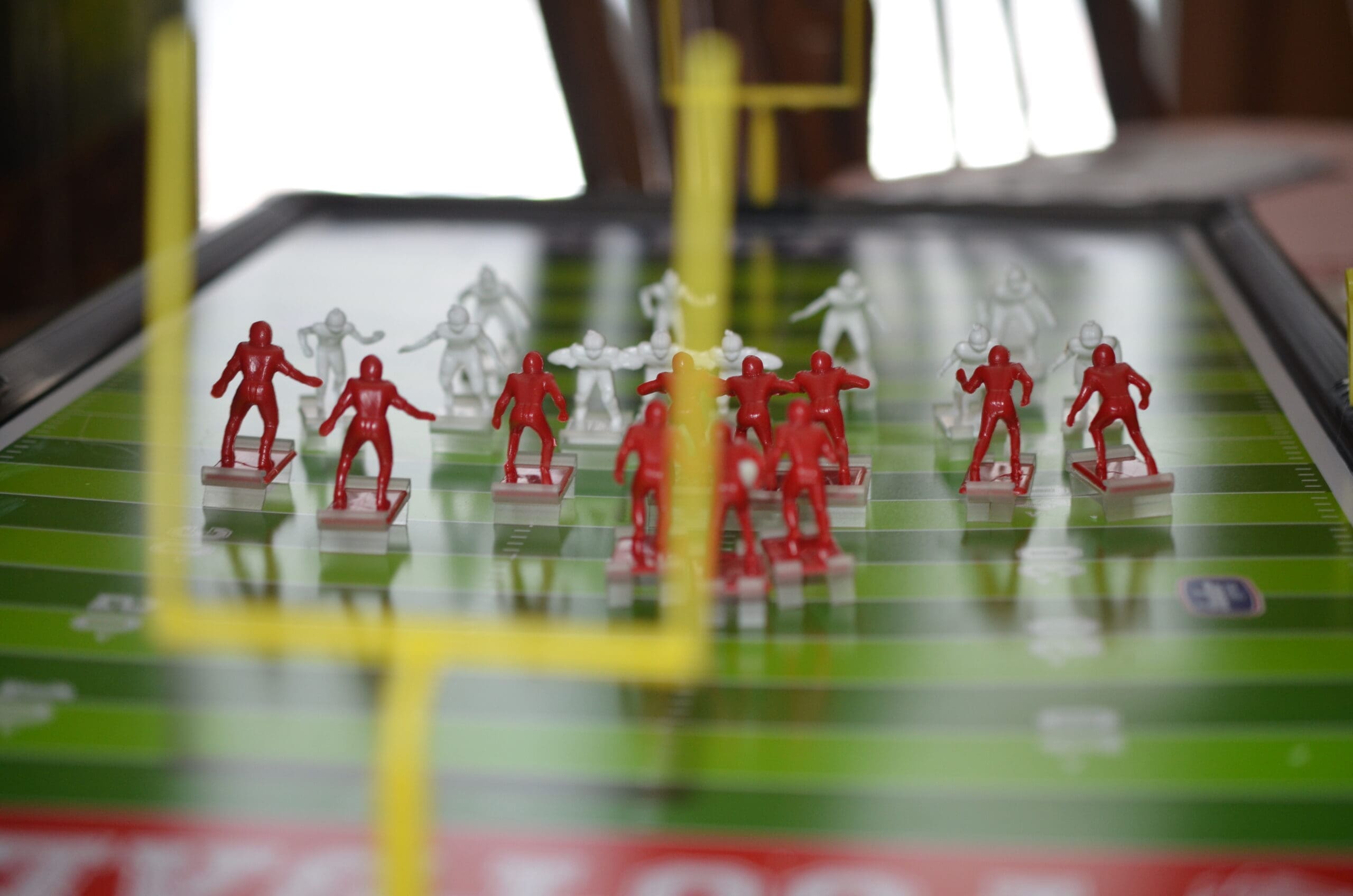 Not NFL or AFL but HOME football! As in Tudor Games Electronic Football. This is Red Zone Electric Football™ 9071. Oh my gosh, DH said this was like a flashback to when he and his three brothers played a game similar to this except his had a metal playing field. I can’t even imagine how loud that would be! Between 4 boys AND a metal playing field!!