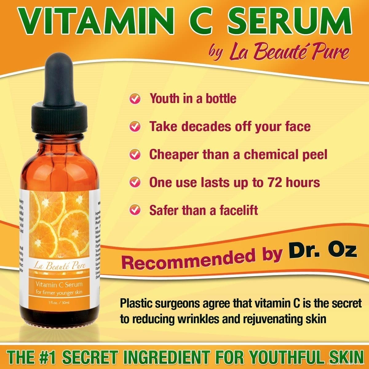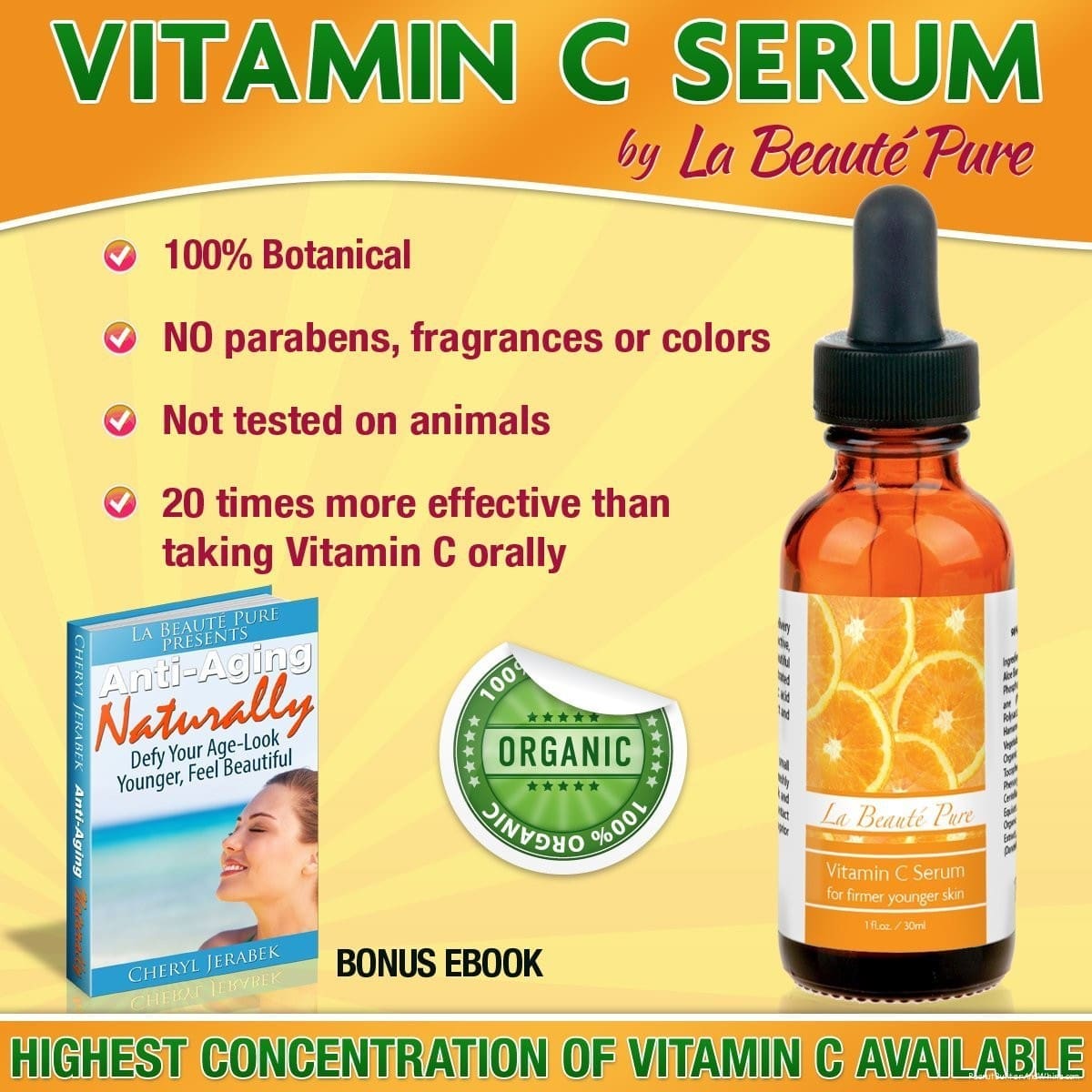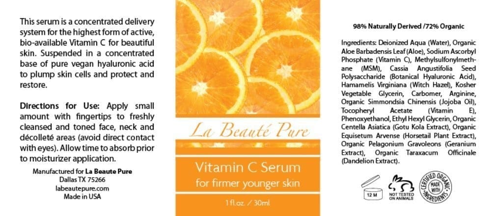 I’ve been using Vitamin C Serum on my face for the last week. The one I’ve been using is the Organic, with the highest dose of Vitamin C available. It’s also enhanced with Hyaluronic Acid, Vitamin E, Gota Kola, Witch Hazel and Dandelion. ALL in one little bottle!! So, why Vitamin C? Because it can help produce collagen. Which is the major structural protein of the skin! Which ultimately means firm skin!! La Beaute Pure Vitamin C Serum is 100% botanical, Organic, NO parabens, fragrances or colors. La Beaute does not do any testing on animals. Here is a WOW for you, Vitamin C Serum is 20 times more effective than taking Vitamin C orally!!