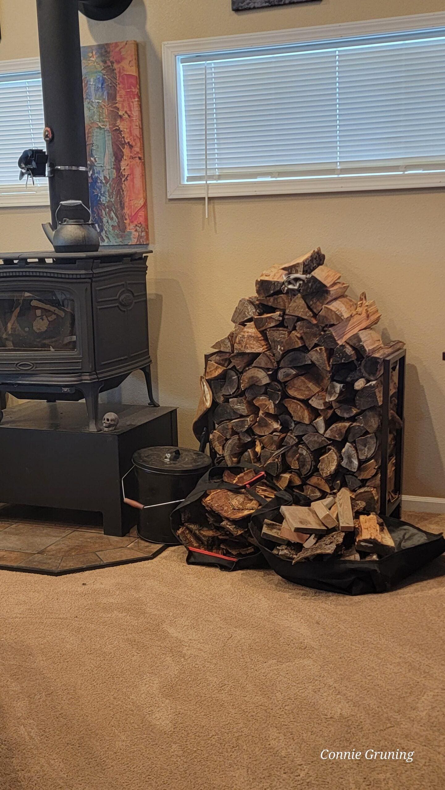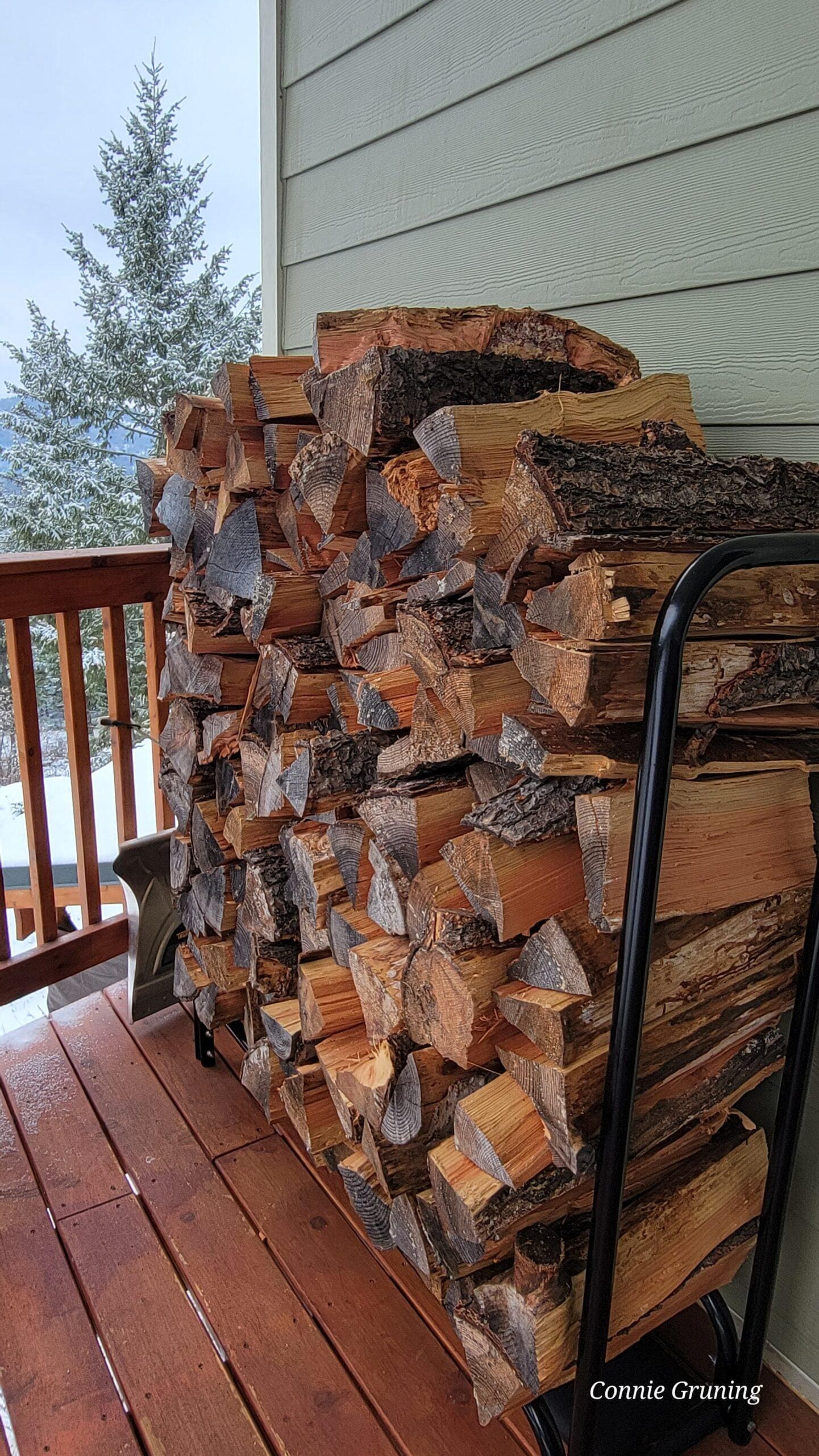 The second stack is the side door that goes out the garage. That is another amazing stack. The front porch and inside the house are full.  I THINK!! We are set for winter. I guess by next spring we will have learned we had enough or NOT near enough. Anyone wanna take out a wager?